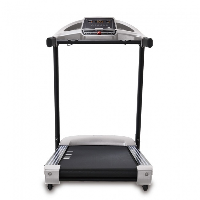 Вы сможете разогнаться на этой беговой дорожке до 18 км в час, причем двигатель работает тихо и не нагревается. Тип тренировки и степень нагрузки меняется при помощи электронной регулировки уровня угла наклона (до 12°). Предельный вес пользователя – 145 килограмм. Дорожка предназначена для активных занятий бегом или ходьбой людям любого веса и комплекции. Износостойкое беговое полотно имеет ортопедический эффект, а система амортизации не даст вашим связкам и суставам подвергнуться излишней нагрузке.