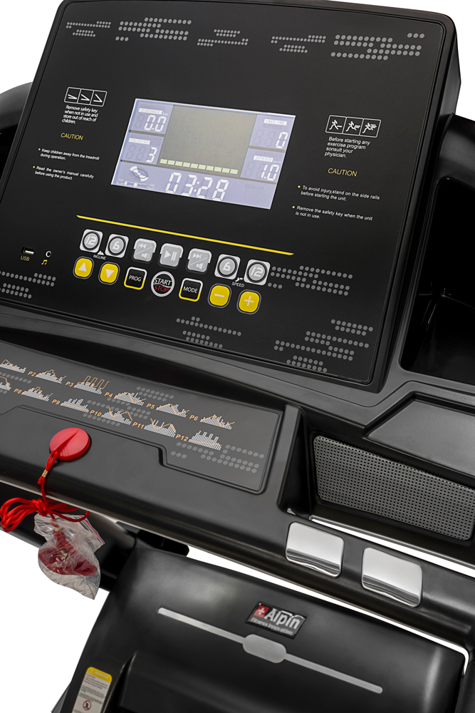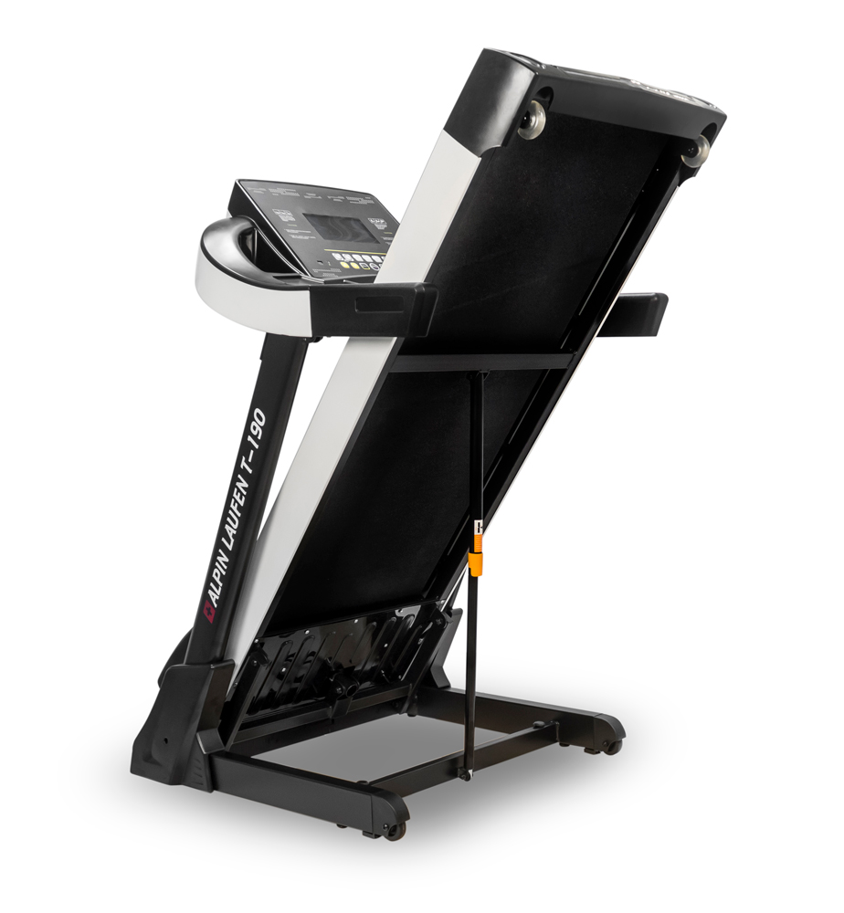 Беговая дорожка Alpin Laufen T190- надежная мощная дорожка. Она оснащена надежным двигателем с внушительной мощностью 3.0 л.с. в режиме постоянной нагрузки (или 5.0 л.с. пиковой мощности). Также она имеет особопрочную раму из толстого профиля. Данная беговая дорожка способна выдержать пользователя вплоть до 140 кг.