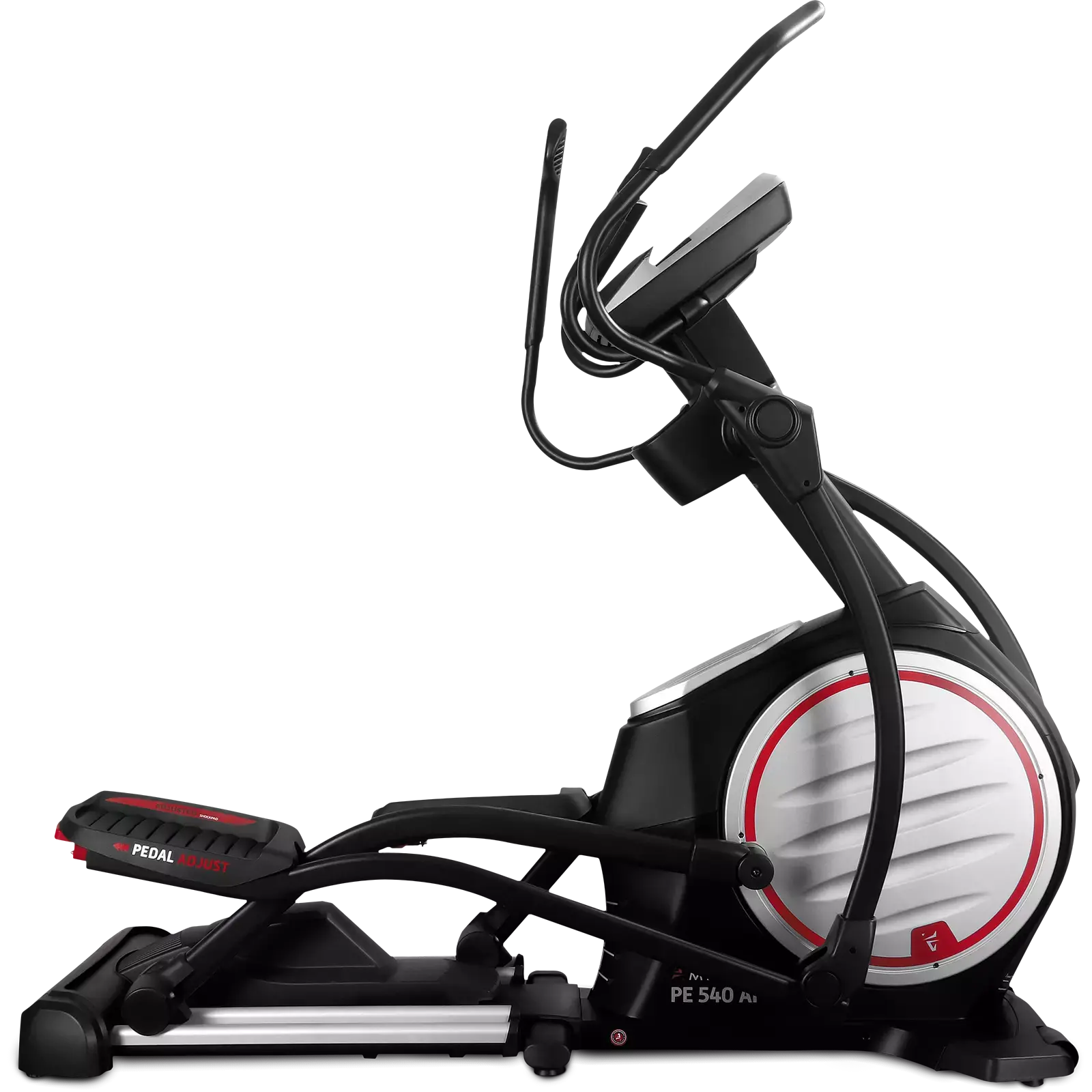 Конструкция тренажера: модель PE 540 AI обеспечивает комфорт и правильное положение для выполнения упражнений пользователям до 180 кг в диапазоне допустимого роста от 160 до 215 cм. Электрическое изменение наклона рампы не только акцентирует нагрузку и увеличивает эффективность тренировок, позволяя максимально глубоко прорабатывать все группы мышц, но и позволяет индивидуально адаптировать посадку на тренажере для максимально удобного положения спортсмена в зависимости от комплекции и спортивной подготовки. Мощный двойной трек с алюминиевыми накладками и электрический подъемник рампы для изменения угла наклона педалей рассчитаны на эксплуатацию пользователями до 180 кг.