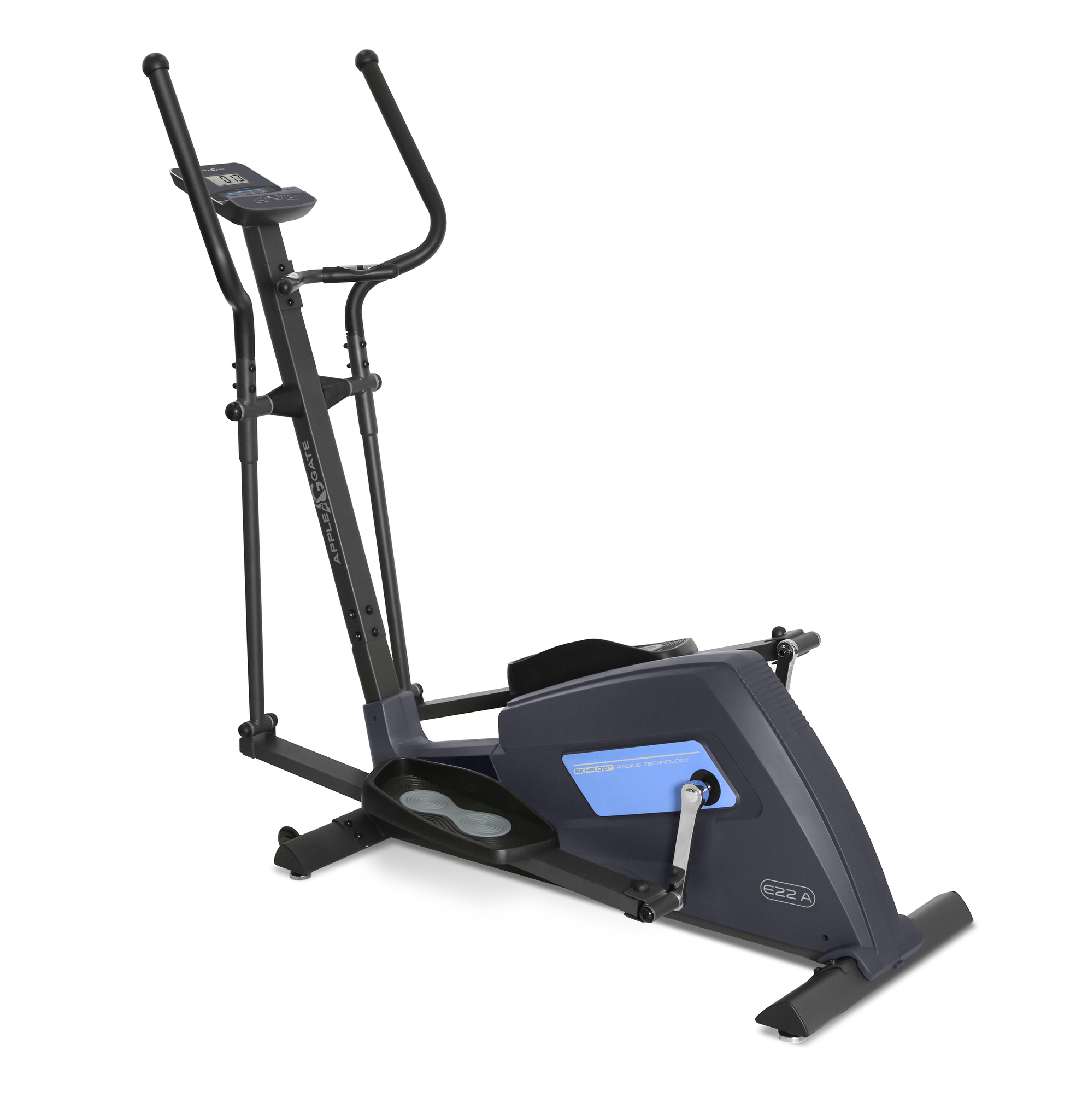APPLEGATE E22 A с электромагнитной системой нагружения относится к классу среднегабаритных эллиптических тренажеров для домашнего применения. Его отличает устойчивая рамная конструкция из усиленного профиля, выдерживающая вес пользователя до 120 кг. Система нагружения построена на базе классического заднего привода. Электромагнитная система нагружения по технологии bio-Flow™+ обеспечивает биомеханически правильное педалирование и корректное распределение нагрузки по всей траектории движения. За высокое качество кручения отвечает трехкомпонентный педальный узел и мощный сбалансированный маховик с инерционным весом 22 кг. Длина шага составляет 42 см. Расстояние между педалями (так называемый "малый Q-Фактор S.Q.F.™") составляет всего 18 см - это одно из самых минимальных значений для эллипсоидов с задним приводом. Чем меньше такое значение, тем больше тренировка на тренажере приближена к естественным движениям во время бега.