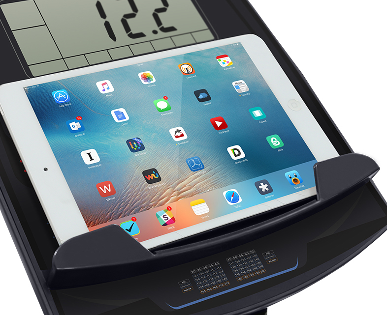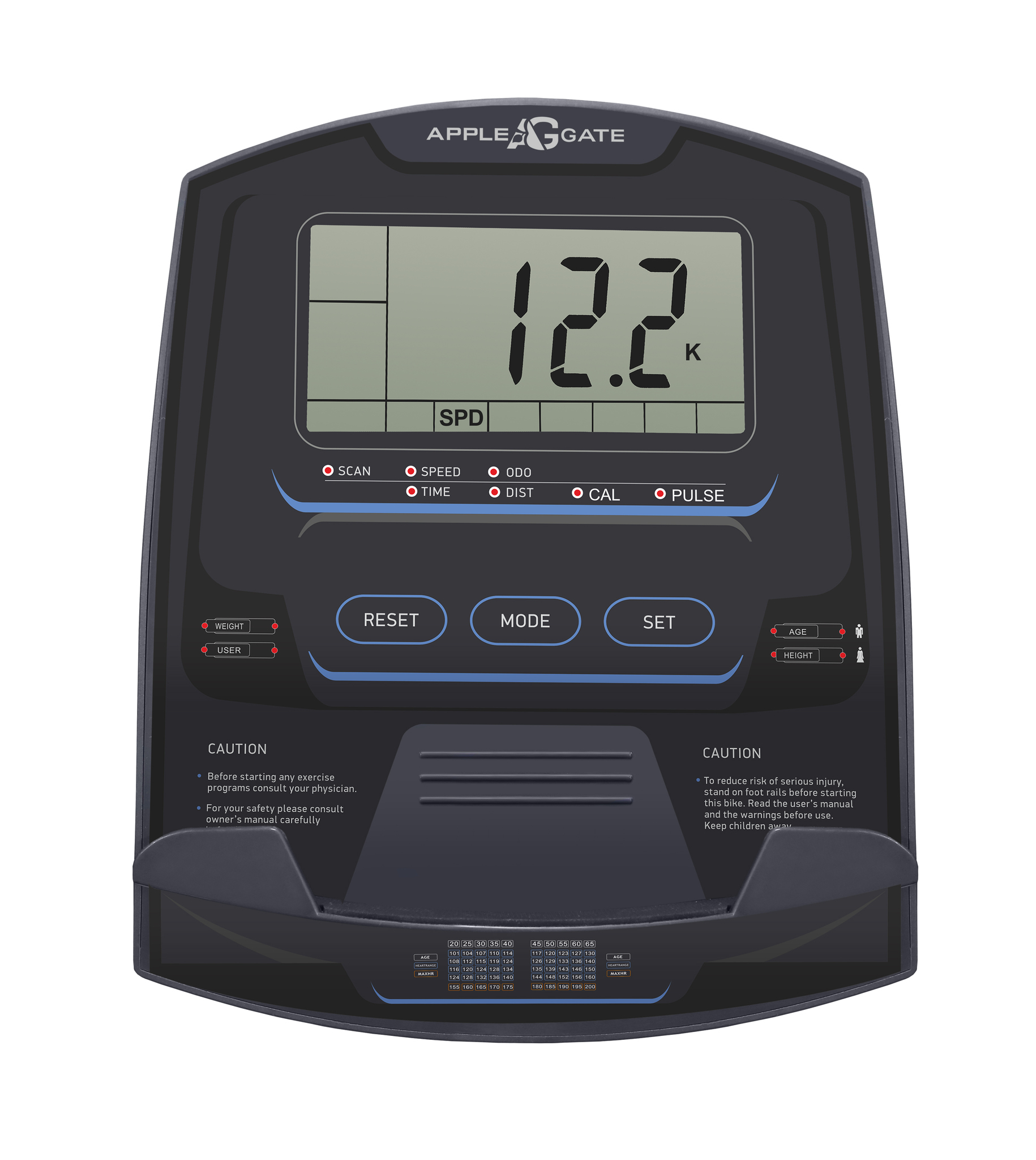 Тренировочный компьютер представлен черно-белым LCD-дисплеем диагональю 14 см. На экран выводятся все основные параметры тренировки - время, дистанция (за тренировку/общая), скорость, калории и пульс. Регулировка нагрузки регулируется механическим путем в 8 положениях.