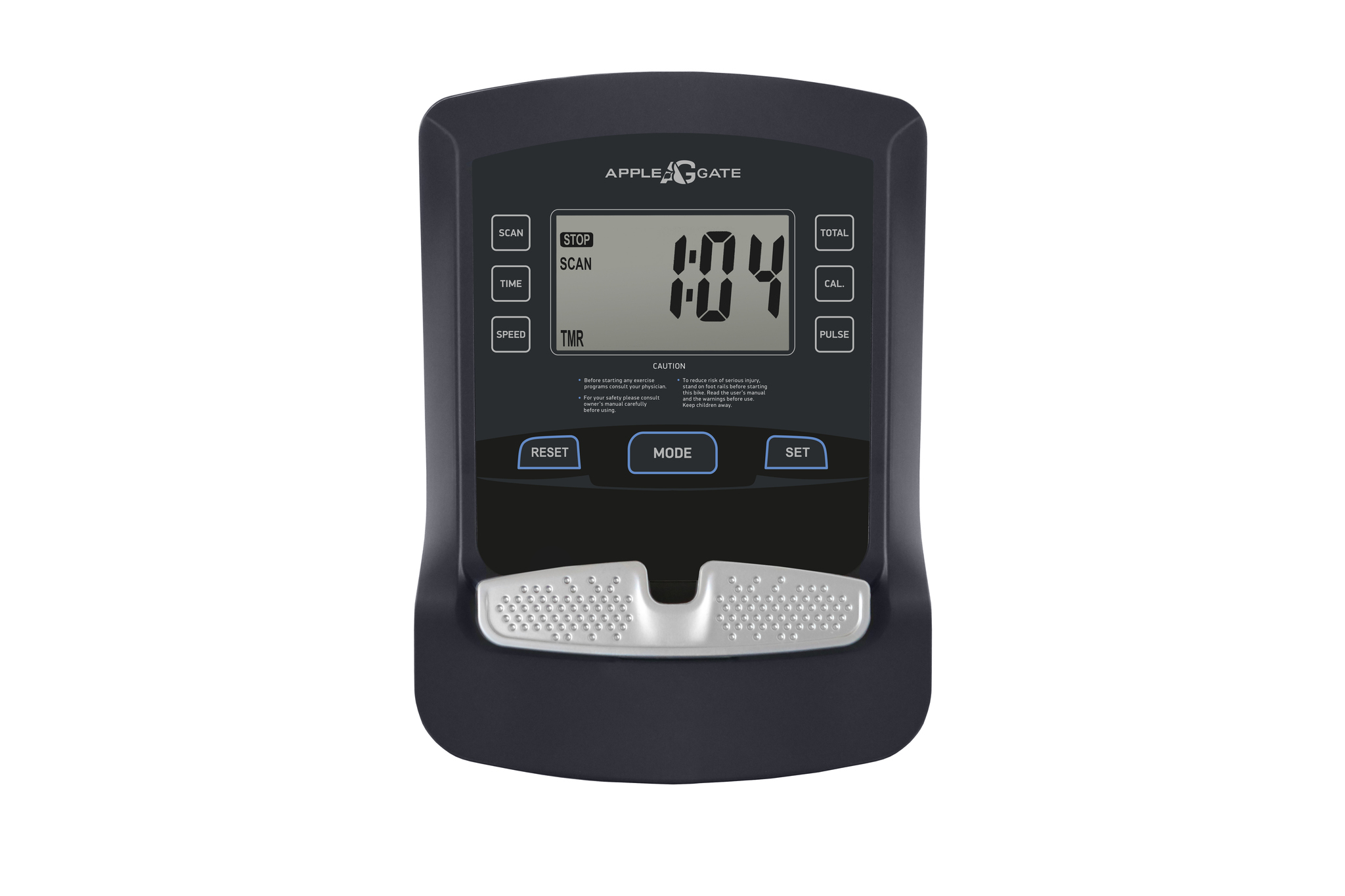 За показатели пульса отвечают вмонтированные в рукоятки сенсорные датчики пульса. Велотренажер удобно перемещать благодаря двум транспортировочным роликам, а точное горизонтальное положение обеспечивают компенсаторы неровностей пола. Черно-белый LCD-дисплей диагональю 9 см одновременно выводит на экран различные параметры тренировки - время, дистанцию, скорость, калории и пульс. На подставку консоли можно поставить планшет или смартфон - это хороший способ справиться с однообразием тренировок. Конструкция рамы рассчитана на комфортную тренировку пользователей ростом до 200 см и весом до 125 кг.