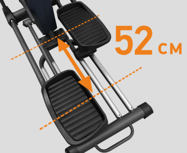 Расположенный спереди маховик позволяет значительно лучше настроить общую траекторию движения, уменьшить расстояние между педалями и добиться увеличения длины шага. В конечном счете, пользователь получает действительно эффективную и щадящую для суставов тренировку.