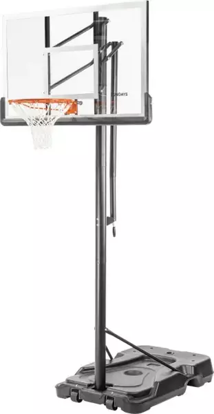 Линейка мобильных баскетбольных стоек DFC URBAN – это оборудование среднего уровня, которое отлично подойдет новичкам и любителям. Щиты изготовлены из поликарбоната толщиной от 2,5 до 3,5 мм, благодаря чему достигается оптимальный отскок мяча. Стойки укомплектована защитным профилем Poly Pade на трубе и в нижней части щита. Портативная конструкция позволяет вам создать собственную баскетбольную площадку так, как надо именно вам. В основание стойки (объем 75 л) необходимо залить воду или засыпать песок в качестве утяжелителя. Щит регулируется по высоте в диапазоне от 230 до 305 см по кольцу. Поворотный механизм позволяет осуществлять регулировку высоты стойки даже детям. В среднем положении вынос щита составляет 45 см. Все стойки серии URBAN оборудованы кольцом DFC R2 без амортизации. Баскетбольная мобильная стойка DFC URBAN 48P имеет размерность щита 120 х 80 см (48’’).