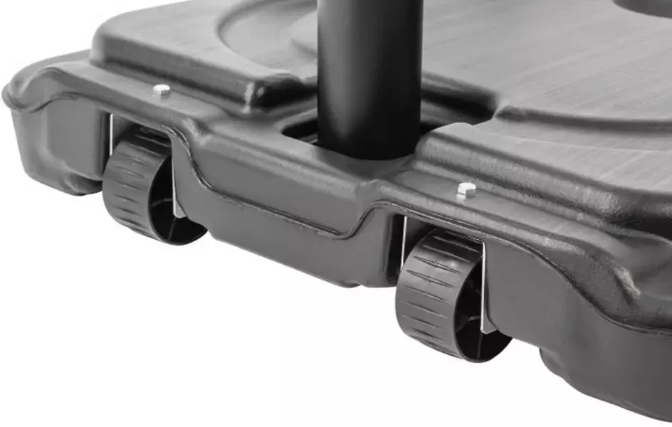 Для перемещения стойки по площадке есть колесики.