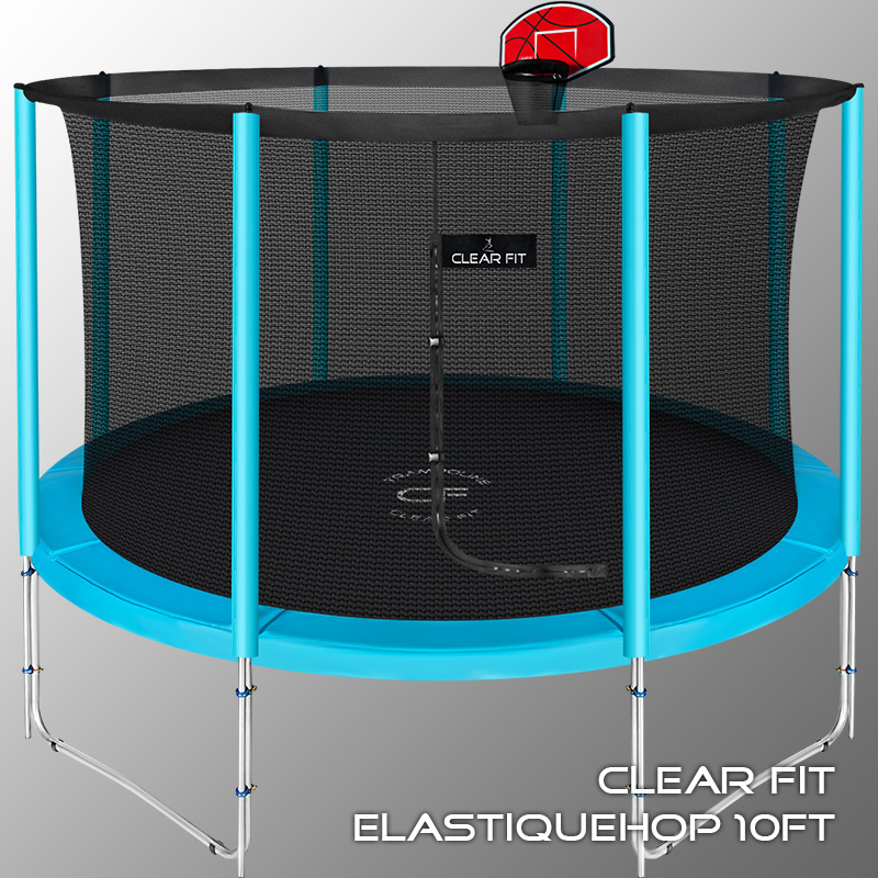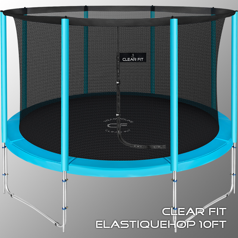 - Двойные опоры и усиленные крепления обеспечивают надежность, прочность и долговечность батута Clear Fit ElastiqueHop.