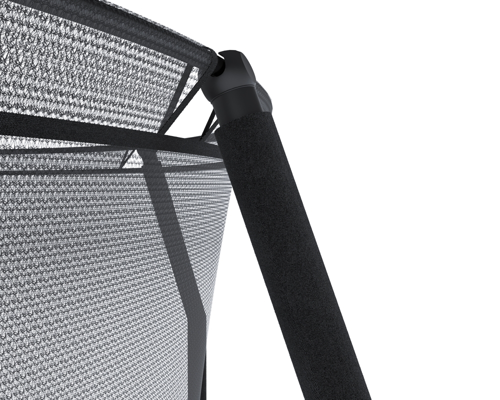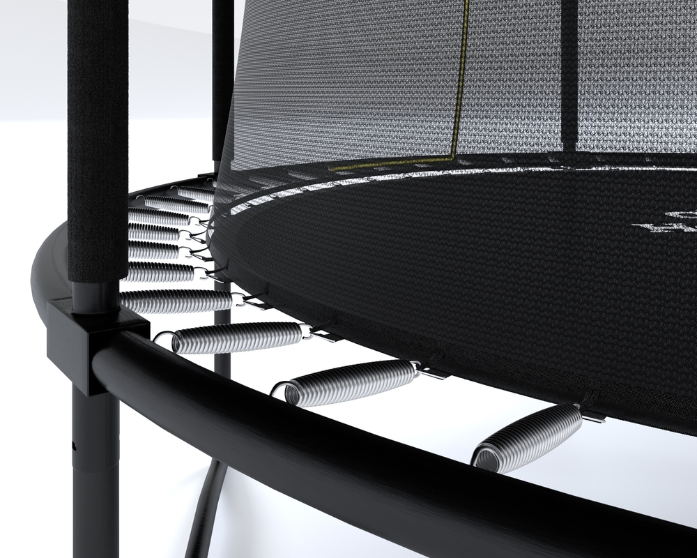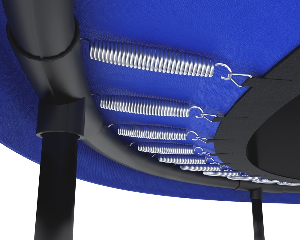 В качестве материала прыжковой поверхности используется прочный перматрон. Надежные опорные стойки из оцинкованной стали обеспечивают устойчивое положение на любом типе покрытия. Максимальную безопасность обеспечивает защитная сетка из высокопрочного нейлона, подушка безопасности толщиной 10мм и верхние стойки в мягких чехлах из поролона.