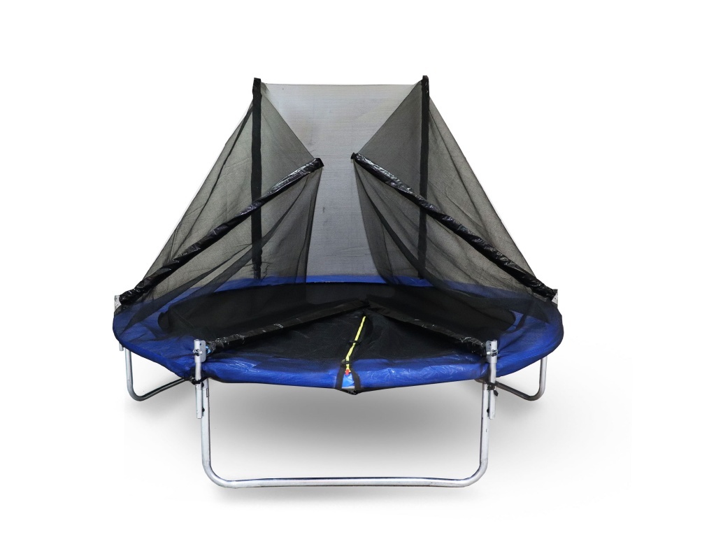 Для обеспечения безопасности пружины закрыты защитным чехлом. Внешняя защитная сетка в комплекте, обеспечит безопасность от случайного падения. Сетка изготовлена из высокопрочного нейлона, надежно крепится к стойкам батута. Для защиты вход/выход через сетку выполнен на молнии с фиксирующими защелками с внешней стороны.