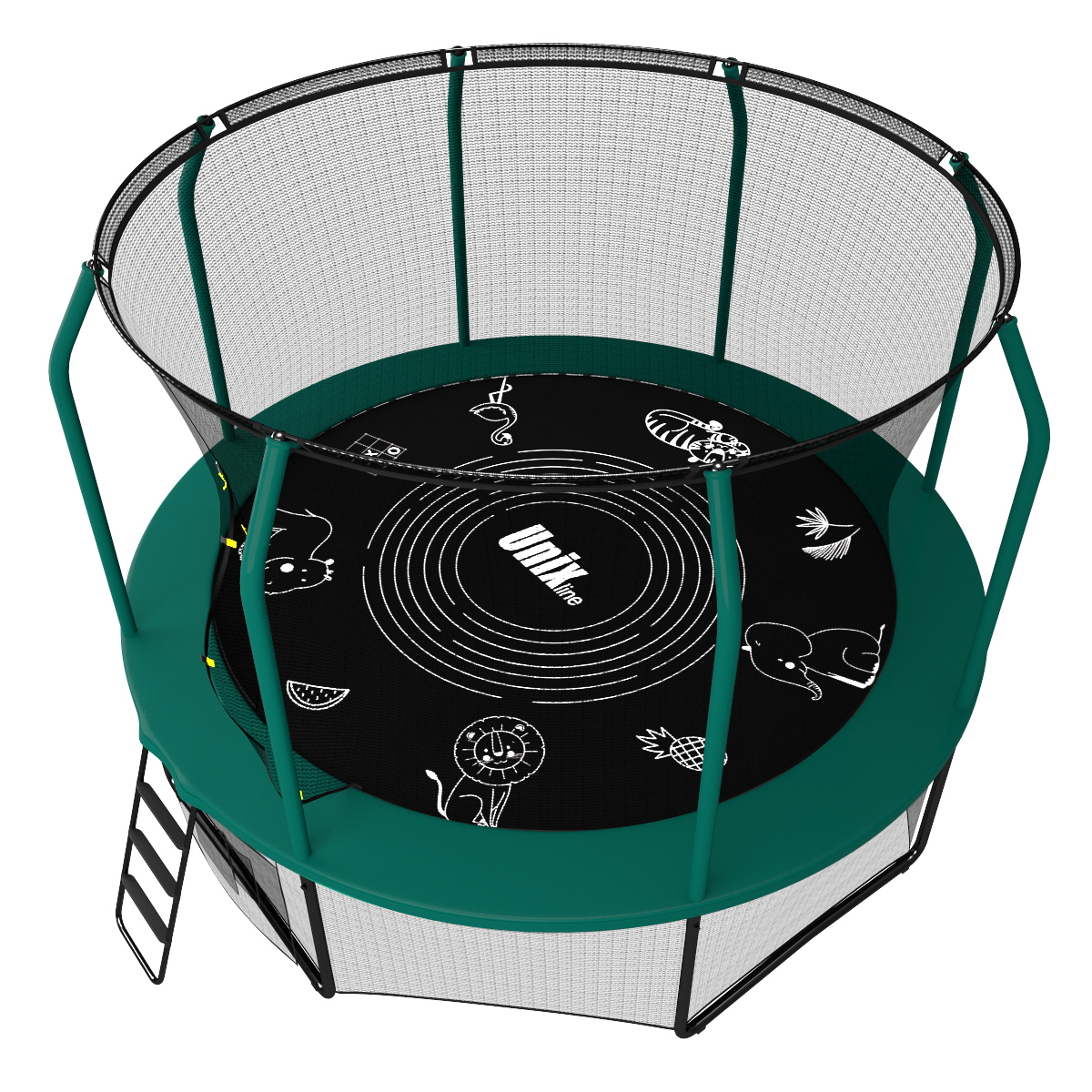 Благодаря особой пропитке прыжкового полотна, рисунки получаются яркими и легко стираются влажной тканью или губкой. Мелки для рисования поставляются в комплекте с батутом в стильном и удобном мешочке. Основные игры на батутах UNIX line SUPREME GAME (4 in 1): 1. «Лабиринт». Данная игра лучше всего подходит для двоих, когда один игрок перекрывает проходы создавая лабиринт, а другой игрок пытается его пройти. Второй вариант игры – найти путь от одного животного к другому. 2. «Крестики-нолики». Всем известная игра, давно полюбившаяся детям и взрослым 3. «Раскрась животное». Все изображения на прыжковом полотне разработаны таким образом, чтобы их могли разукрасить даже самые юные художники, но стоит включить воображение, например добавить тени и изобразить детали, как животные буквально «оживают», поэтому данное занятие придется по вкусу и более опытным любителям живописи. 4. «Нарисуй сам». Для реализации самых интересных идей дизайнеры батутов UNIX line SUPREME GAME (4 in 1) специально оставили пустые места на прыжковом полотне. Полная свобода творчества, ограничивающаяся лишь фантазией художника. (!) для рисования на прыжковом полотне, необходимо использовать только мелки для асфальта (!) ручки, карандаши, маркеры, фломастеры и иные пишущие средства запрещены для использования на прыжковом полотне