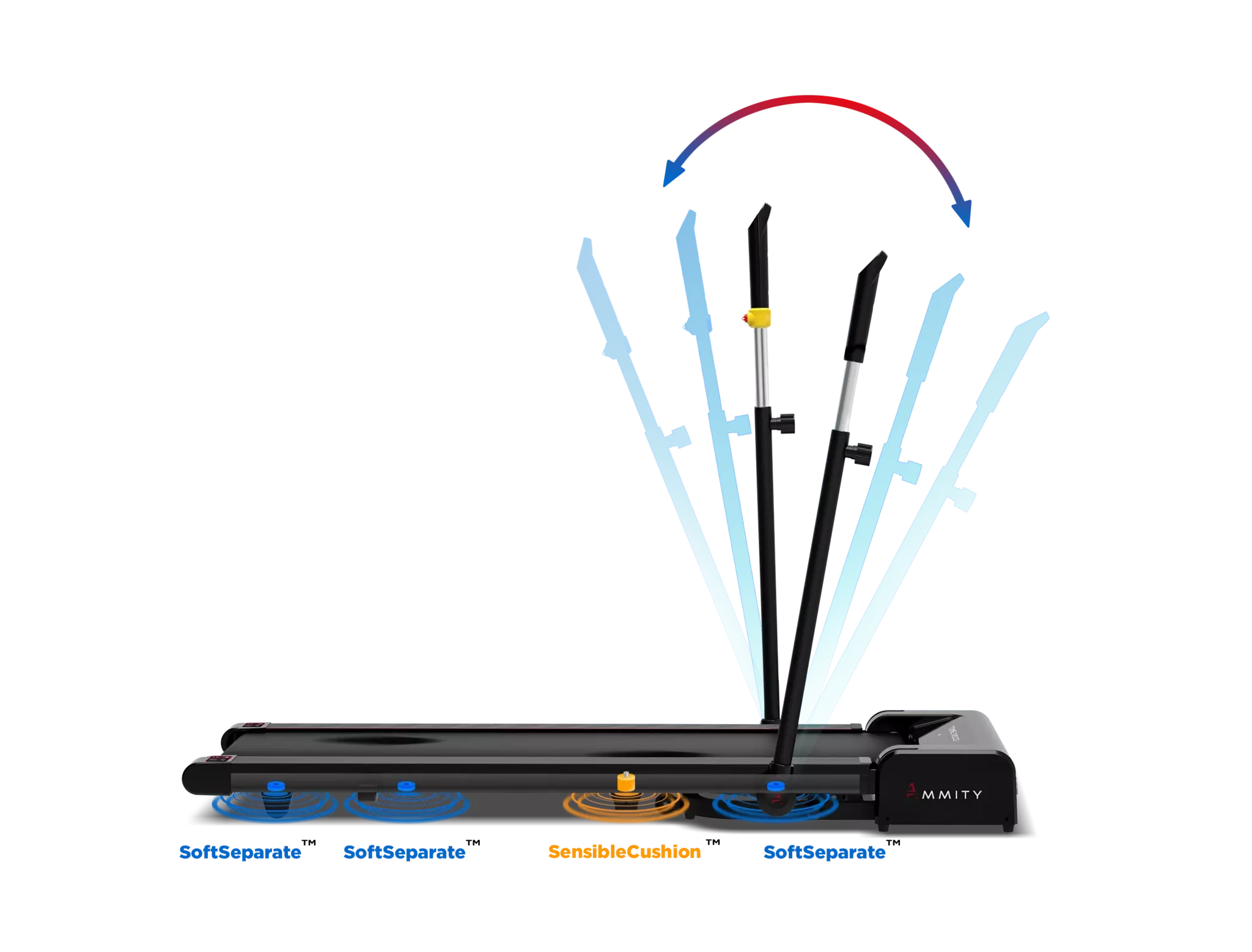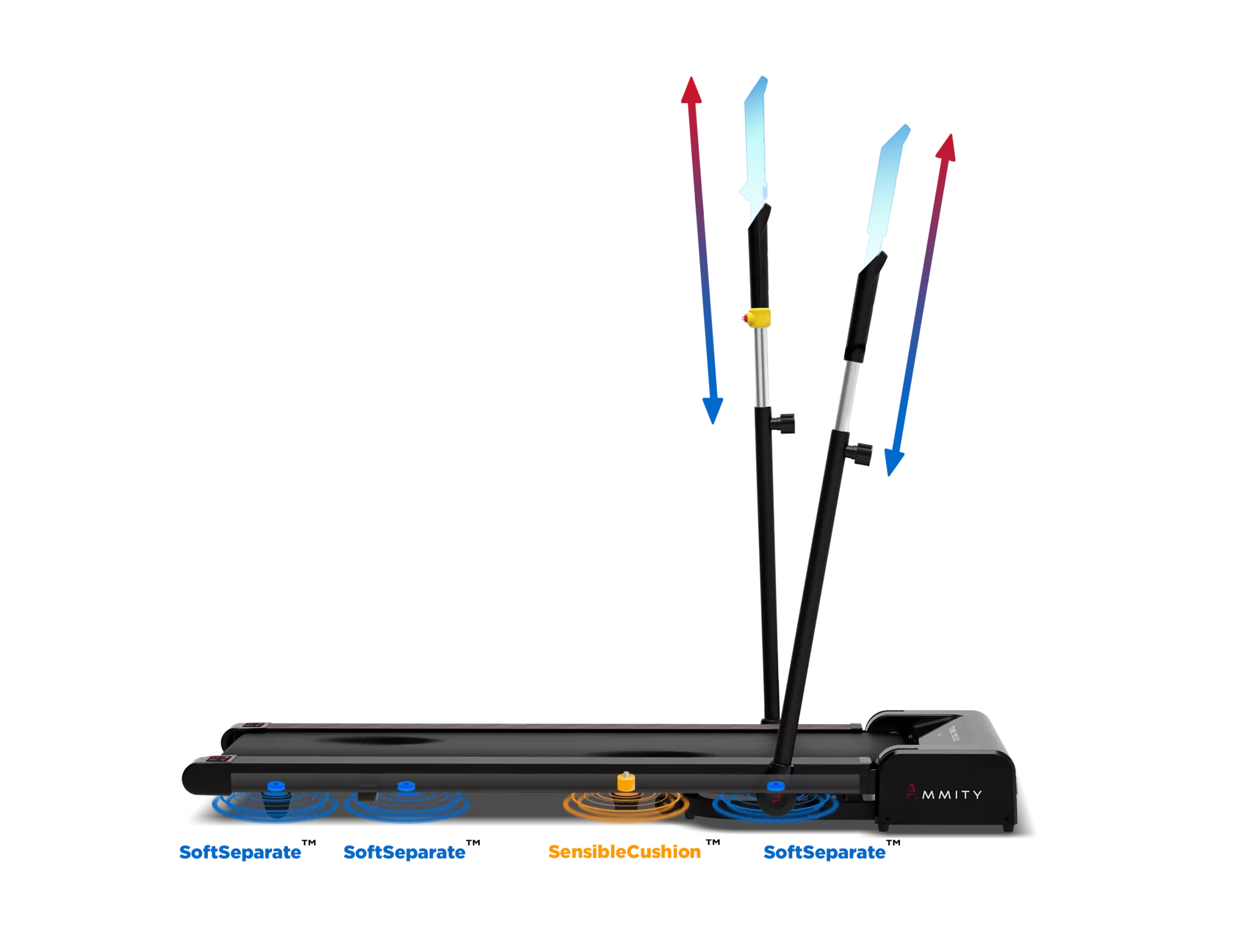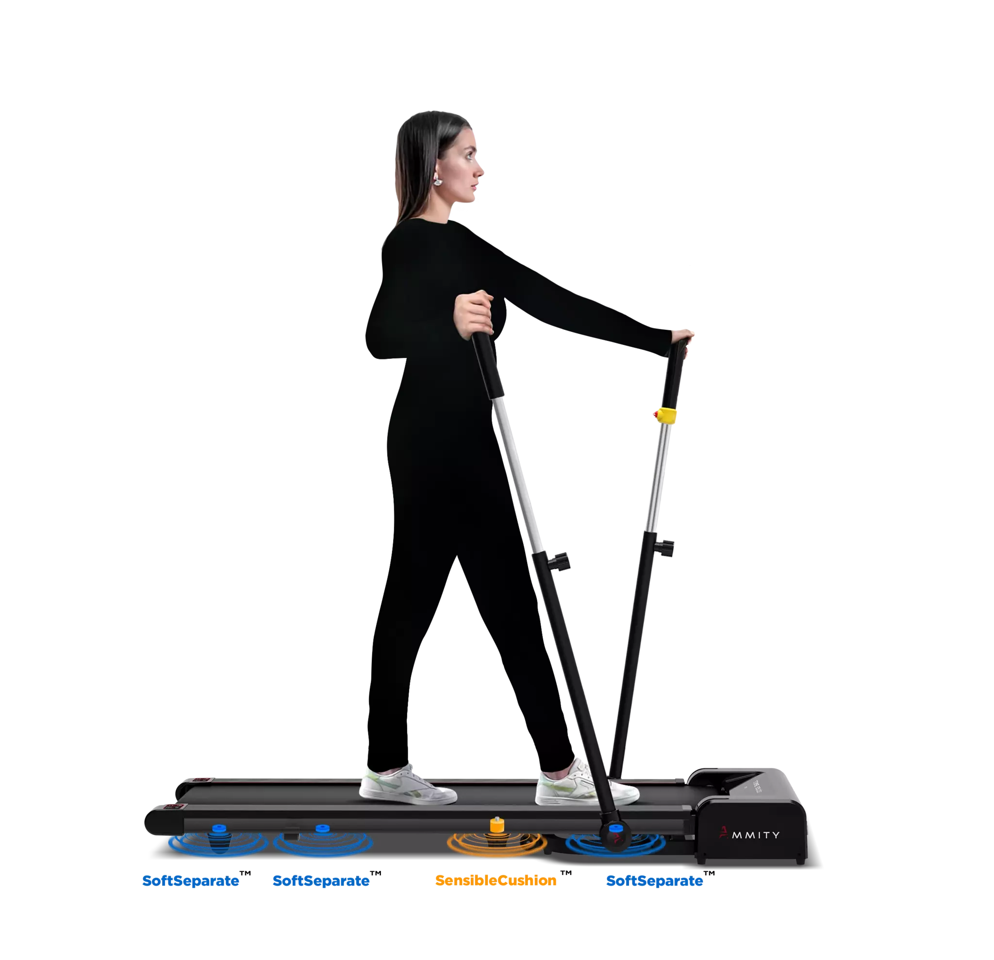 Амортизация: комфортная и безопасная система амортизации состоит из 2-х типов эластомеров, которые зонируют деку на 3 части. SensibleCushion™ в центральной части деки обеспечивает мягкость и безопасность, снимает ударную нагрузку и отдачу при приземлении, амортизаторы SoftSeparate™ по периметру деки создают необходимую жесткость для комфорта толчковой ноги, это обеспечивает максимальную безопасность суставов не только при беге, но и при длительной ходьбе спортсменам любого возраста. Позволяет максимально эффективно и безопасно использовать тренажер при любой скорости тренировки.
