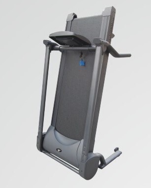 При сложенном беговом полотне тренажер занимает не более 1 кв. метра площади. Опускание полотна также оптимизировано газовыми доводчиками, чтобы случайно не повредить покрытие пола. Доводчики плавно и бесшумно опускают полотно на пол.