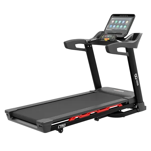 Профессиональная беговая дорожка CardioPower PRO CT150 предлагает просторное беговое полотно размером 55 х 155 см, идеальное для комфортных тренировок пользователей разной комплекции.