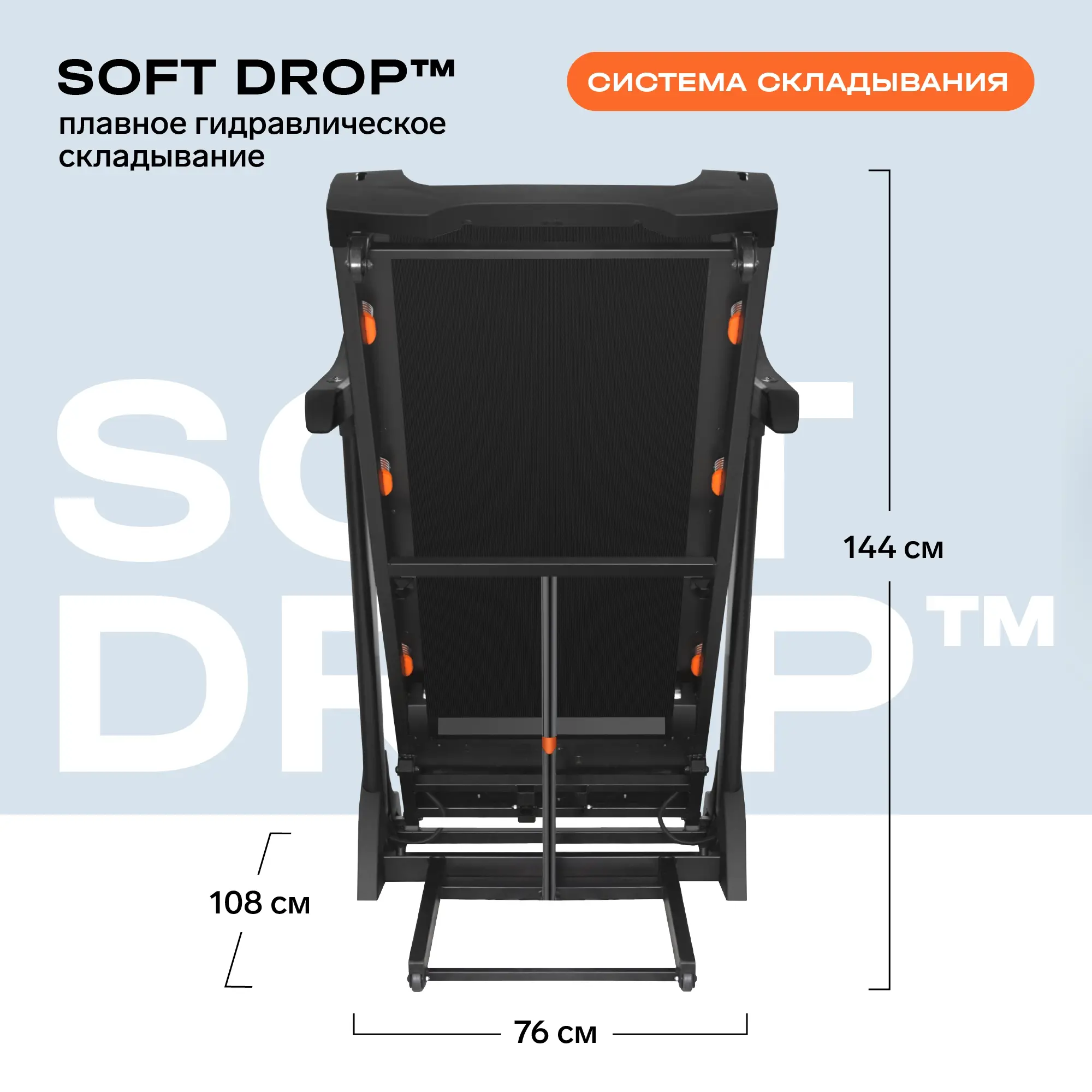 | Дополнительные особенности тренажера | гидравлическое складывание SOFT-DROP™; мультимедийная компонента, мобильное приложение FITSHOW |