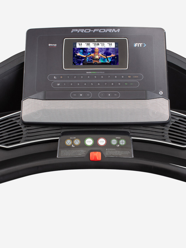 Элементы управления консоли и вся необходимая информация о тренировке удобно расположены под рукой. Наклон и скорость настраиваются в одно касание.