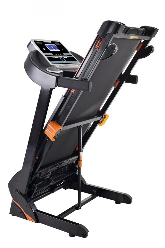 Гидравлическая система складывания «JUST CLICK» существенно облегчает складывание тренажера, а при раскладывании обеспечивает медленное опускание полотна в последней фазе, гарантируя легкость и безопасность.