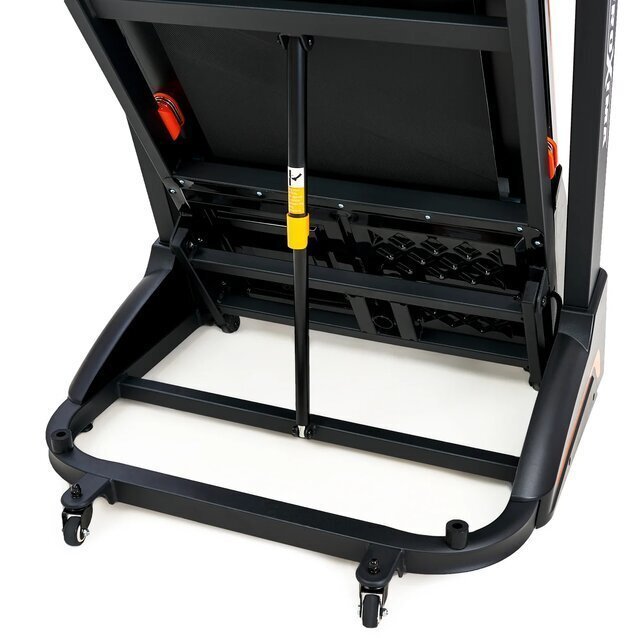 Гидравлическая система складывания «JUST CLICK» существенно облегчает складывание тренажера, а при раскладывании обеспечивает медленное опускание полотна в последней фазе, гарантируя легкость и безопасность.