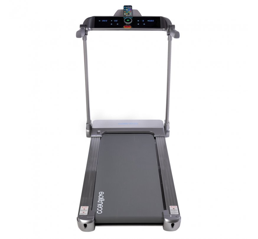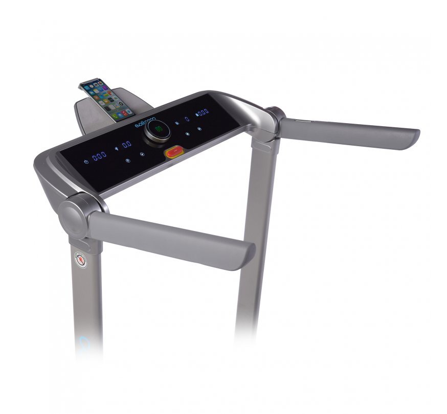 Параметры беговой дорожки позволяют проводить полноценные тренировки даже подготовленным спортсменам за счет широкого бегового полотна размером 128 х 46 см и мотора с рабочей мощностью 2 л/с., который развивает максимальную скорость до 14 км/ч. Тренажер оснащен новой, запатентованной магнитной системой амортизации, которая не нуждается в смазке. Удобная и приятная в использовании LED консоль, отображает все основные параметры тренировки: время, пройденную дистанцию, расход калорий, текущую скорость. Запуск, остановка, и регулировка скорости происходят при помощи центрального модуля управления поворотного действия. Высокопрочное, многослойное беговое полотно Diamond Stripes, толщиной 1,6 мм., рассчитано на интенсивную и многолетнюю эксплуатацию. Тренажер имеет сенсорное управление скоростью, расположенное на рукоятке стойки. Беговая дорожка оснащена подставкой для гаджетов с системой плотной фиксации, полностью исключающей скольжение или движение мобильного устройства.