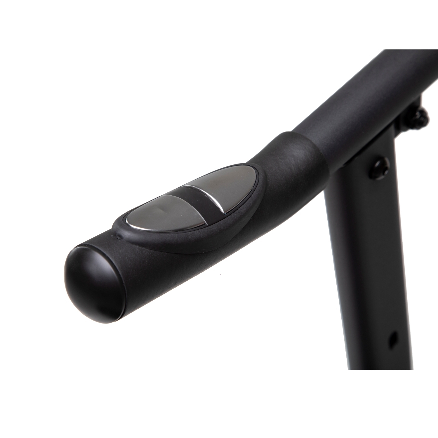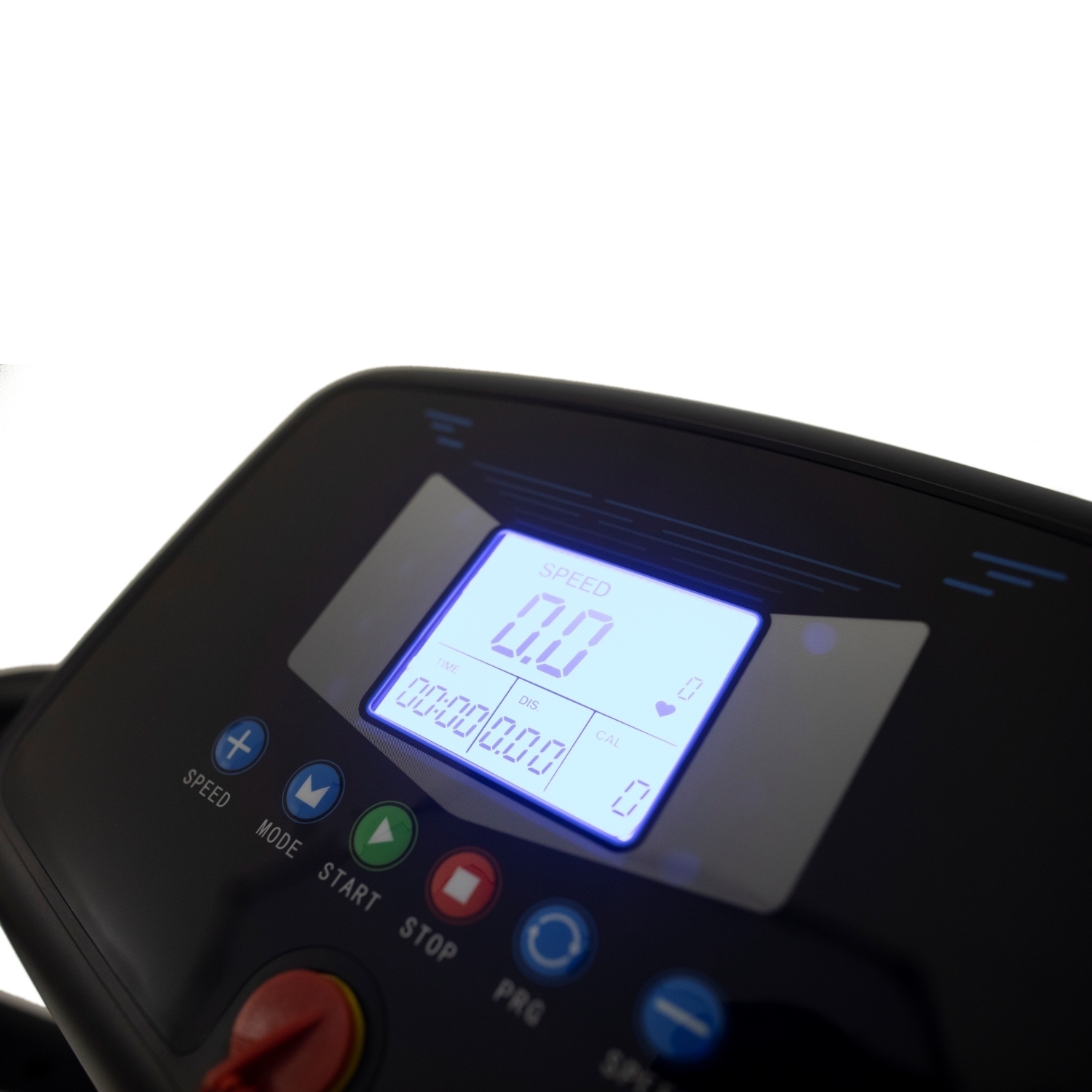 На поручнях есть сенсоры пульса. Его частота отображается на ЖК монохромном дисплее, как и другие параметры тренировки ― расстояние, время, скорость, калории и выбранная программа. При помощи кнопок на консоли можно управлять этими показателями.