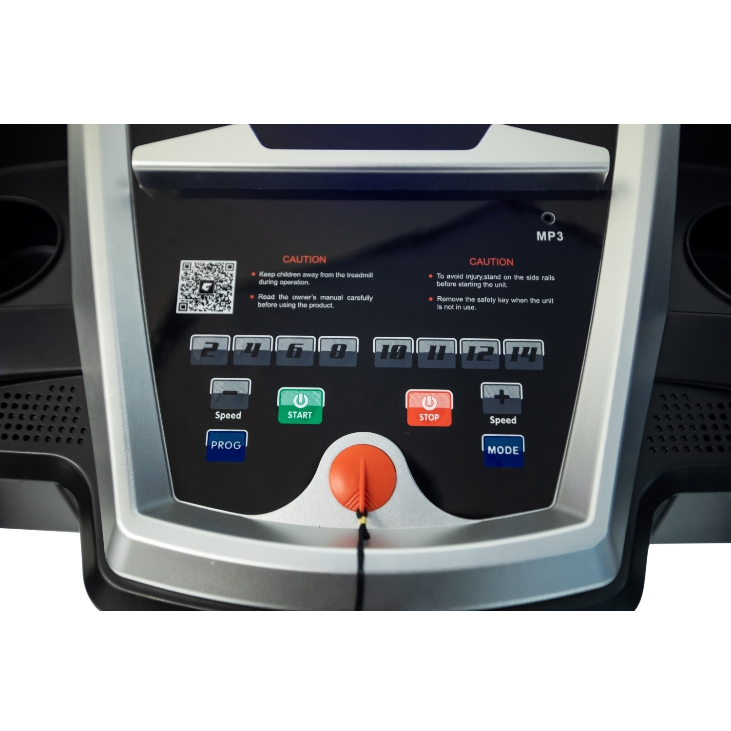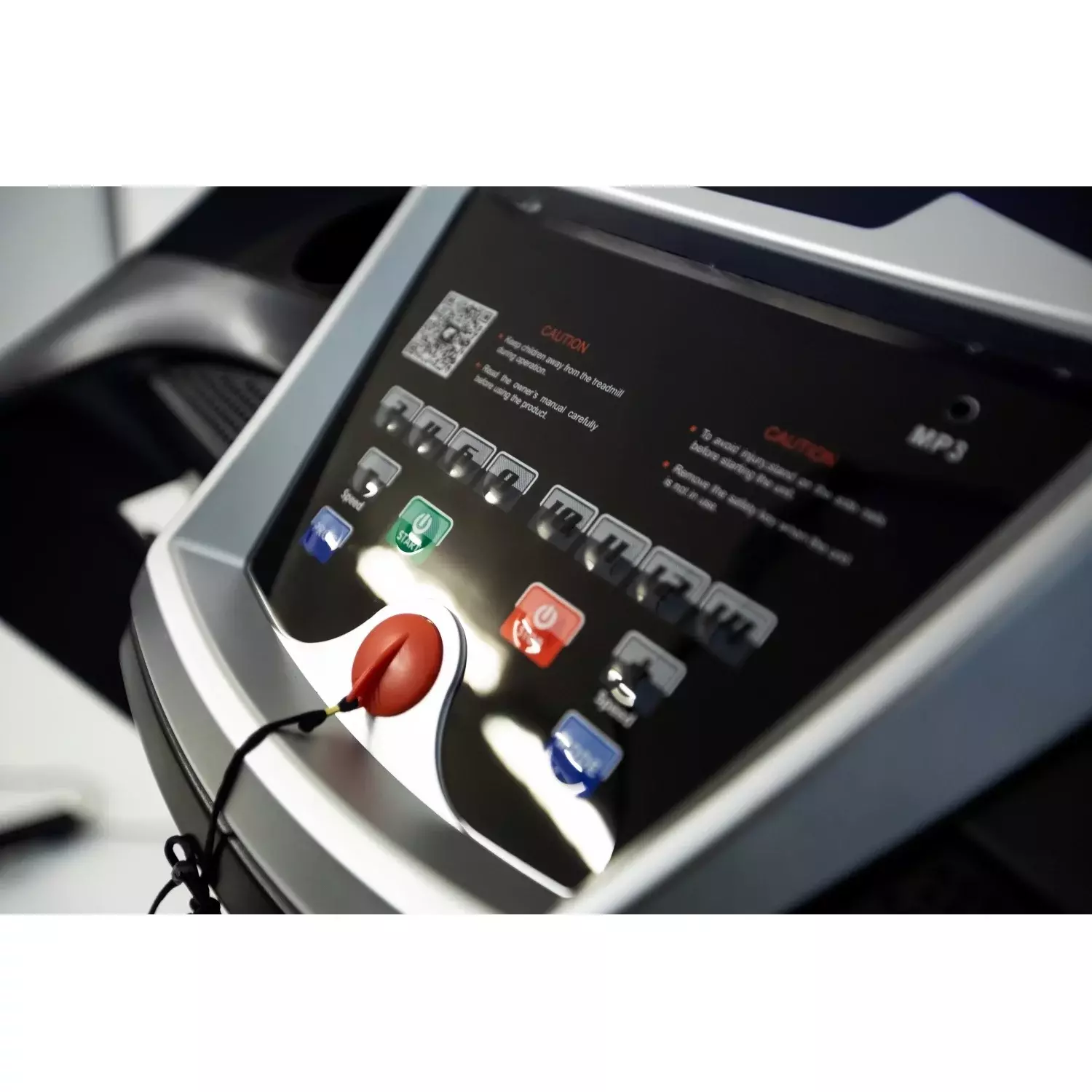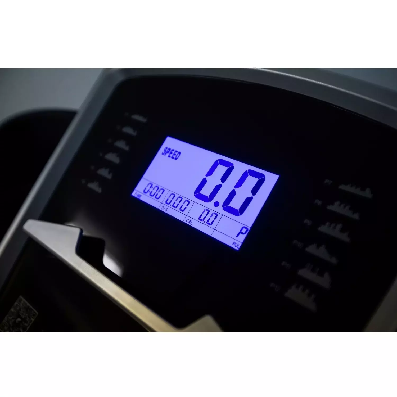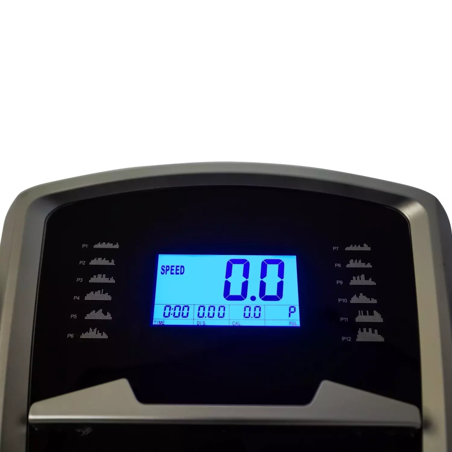 Пользователям доступна ручная настройка программы занятия или 12 встроенных программ. Есть функция определения индекса массы тела. Для этого понадобится выбрать свои данные с помощью кнопок на консоли. Результат будет отображаться на LCD-дисплее. Там же можно проверить скорость, пройденную дистанцию, пульс, расход калорий. Консоль поддерживает MP3 и Bluetooth. Это дает возможность подключать к тренажеру плеер или смартфон и слушать аудиотреки через встроенные колонки.