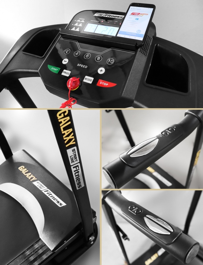 Для этой модели характерны бесшумная работа двигателя и плавное движение бегового полотна, которое имеет антистатическое и противоскользящее покрытие. Усиленная рама тренажера изготовлена из высококачественной стали позволяет заниматься пользователю с массой до 110 кг.