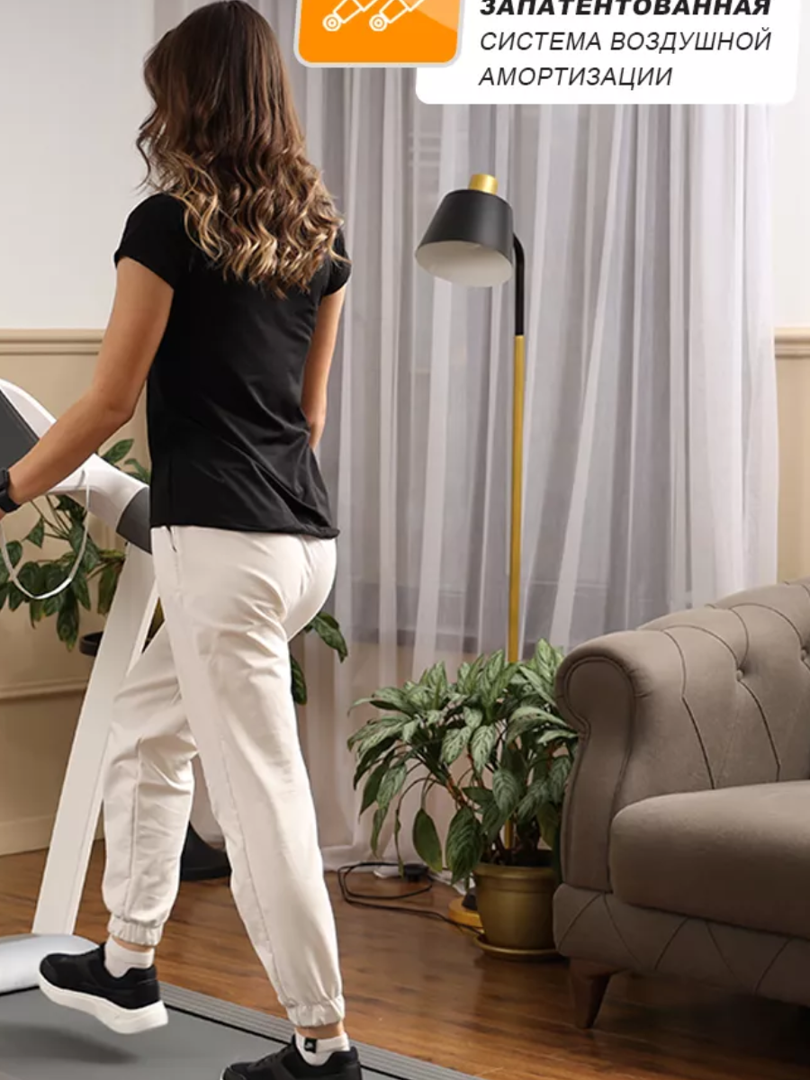 Трехслойное полотно с системой поглощения удара CCMD SOFT DECK (толщина 1.6 мм), запатентованная подстраиваемая система воздушной амортизации AI Intelligent Airbag SRS, которые снижает нагрузку на суставы и позвоночник во время бега;