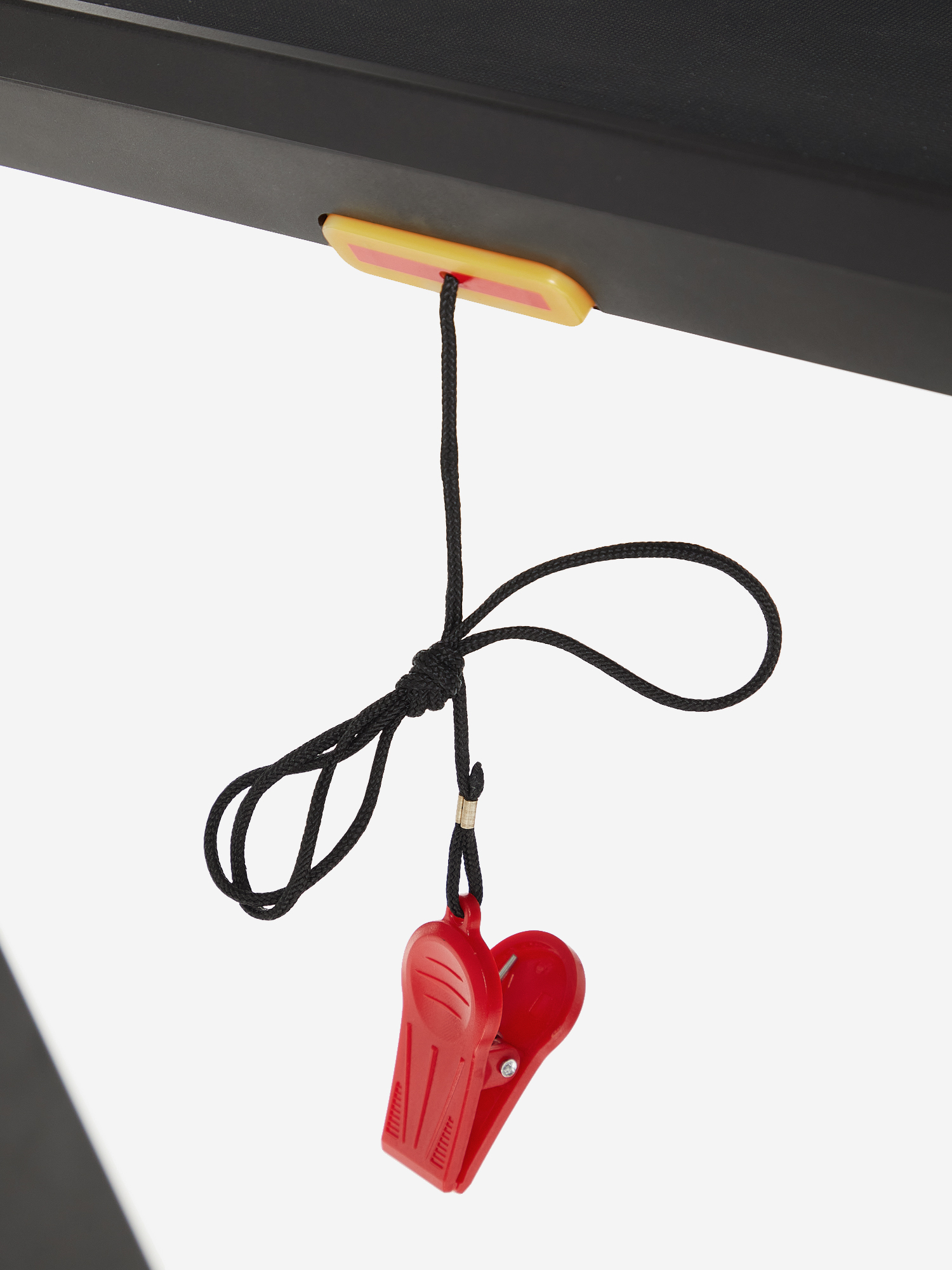 В модели заложено пространство под полотенце и бутылку с водой. Имеется удобная прорезиненная полочка для мелочей или мобильного, прорезиненный держатель для планшета или смартфона с потайным дополнительным фиксатором девайсов, а также консоль в ультрасовременном исполнении, которая отлично сочетается с конструкцией дорожки. - БЕЗОПАСНОСТЬ