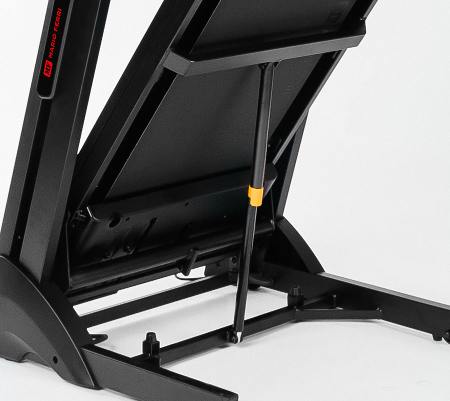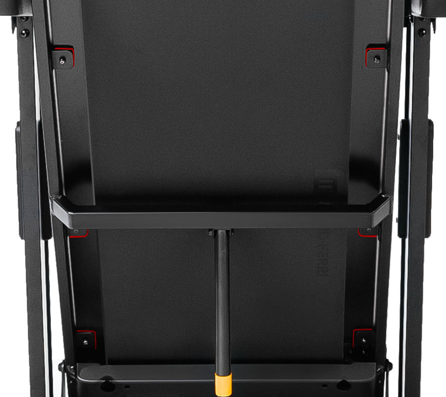 Дорожка легко складывается и раскладывается благодаря двухфазному газовому доводчику. Переместить ее можно с помощью двух транспортировочных роликов. Максимальный вес пользователя составляет 150 кг. Это реальная величина без всяких поправок и скидок – конструкция рамы, а также двигатель и электроника полностью готовы к таким нагрузкам.