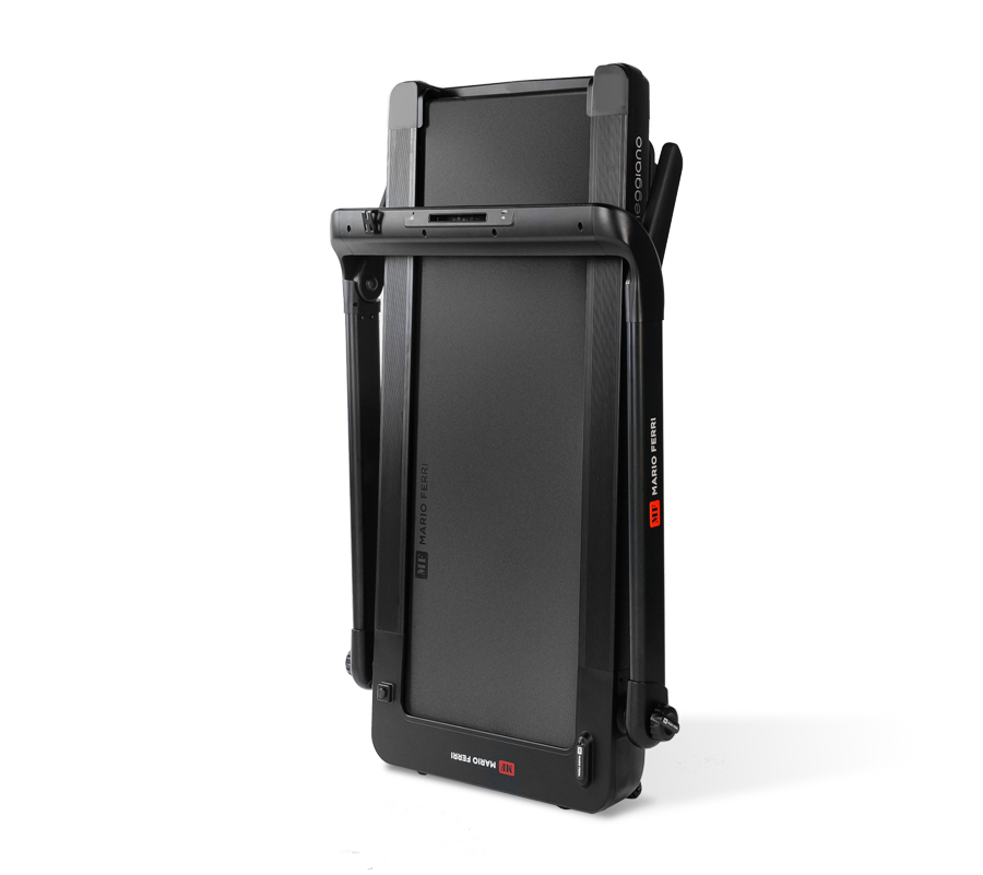 Это первая беговая дорожка в мире, объединяющая в себе большой размер бегового полотна (141,5*50,5 см), электрический угол наклона и полноценное компактное складывание. Ни одна из существующих на сегодняшний день складных беговых дорожек не обладает техническими характеристиками уровня Meggiano. Достаточно сказать, что максимальный вес пользователя составляет 180 кг. Это реальная величина без всяких поправок и скидок – конструкция рамы, а также двигатель и электроника полностью готовы к таким нагрузкам. Помимо выдающихся характеристик, дорожка отлично выглядит – выразительный и характерный итальянский дизайн угадывается с первого взгляда. Цветовая гамма построена с использованием матового черного, который отлично гармонирует с подсветкой синего цвета, расположенной по краям деки и в передней части консоли. В целом, это действительно совершенный со всех точек зрения продукт, который удовлетворит любого самого требовательного покупателя.