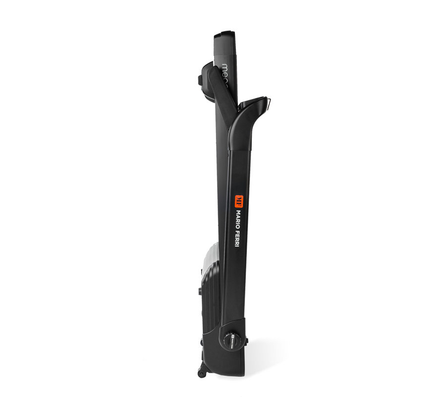 Основной двигатель Meggiano, отвечающий за скорость – синхронный Nidec-AnsaldoTM Compact Drive мощностью 3,25 л.с. постоянного тока – позволяет разгонять дорожку до внушительных 16 км/ч. При необходимости изменить угол наклона подключается двигатель подъема Nidec-AnsaldoTM Valeo, за счет него дорожка поднимается до 20% на максимуме. Рама Mario Ferri Meggiano разработана специально под новейшие компактные двигатели Nidec-AnsaldoTM. Оба двигателя расположены не спереди деки, а под ней. Это передовое техническое решение, позволяющее существенно уменьшить длину тренажера. Компактность важна для уменьшения размеров моторного отсека, дорожка становится легче для перемещения и меньше по габаритам, что имеет не только практическую пользу, но позволяет реализовать новые дизайнерские решения.