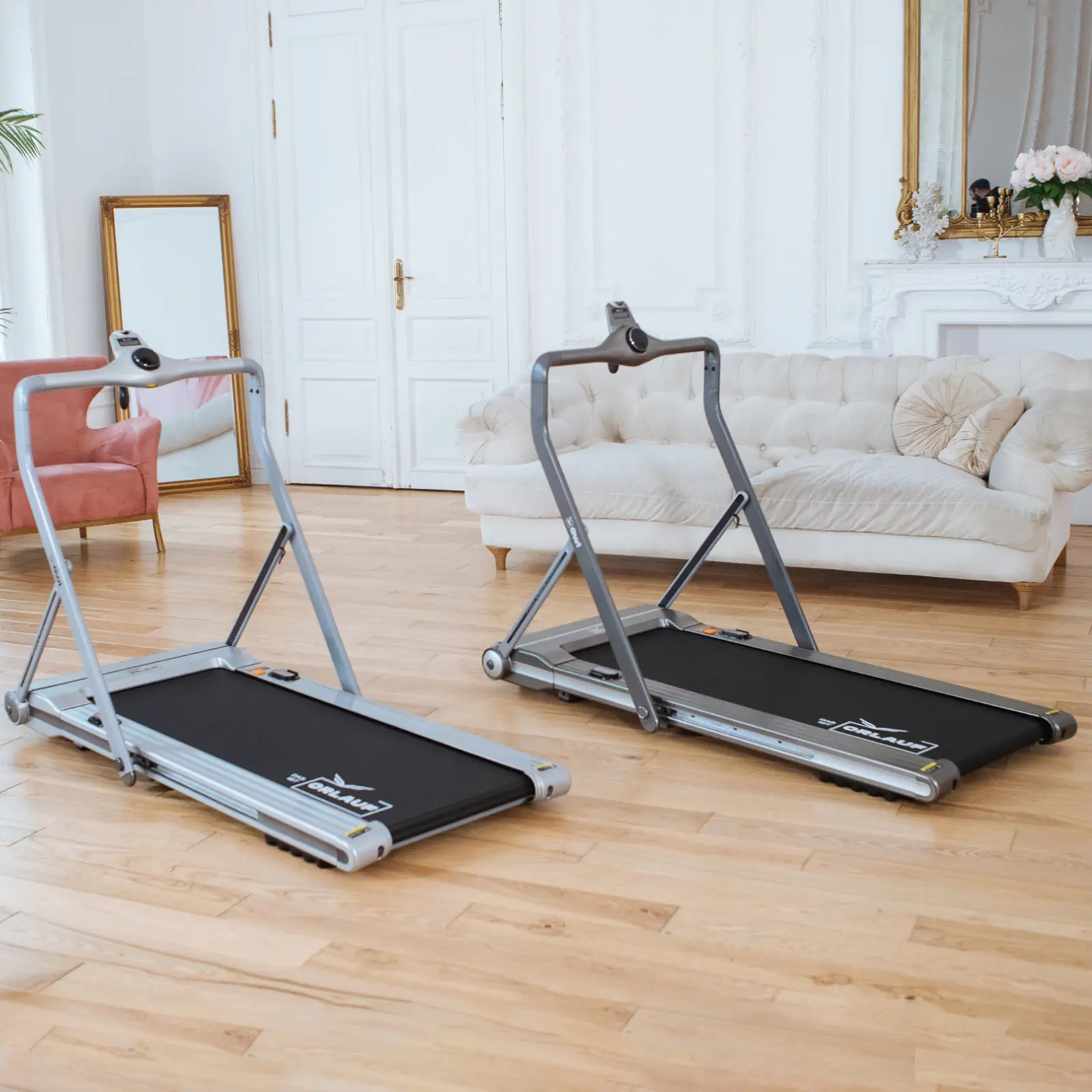 В сложенном виде высота дорожки всего 20 см, это один из самых маленьких показателей для домашних складных моделей. Для ходьбы со скоростью до 6 км/ч консоль можно не поднимать. При этом управлять дорожкой можно с помощью пульта.