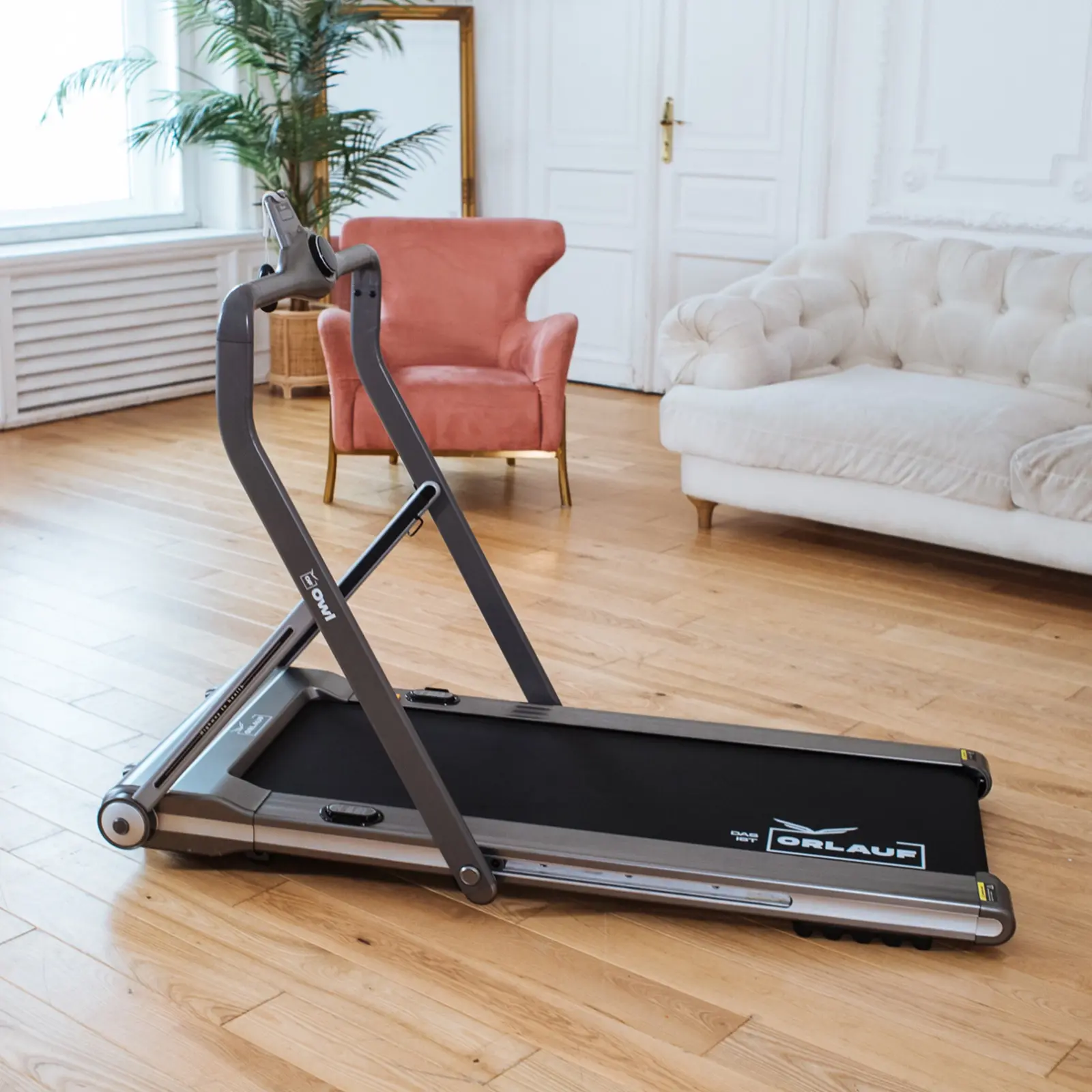 Для Owl предусмотрели толстое беговое полотно с антискользящим протектором. Также хорошо продумана система амортизации Pansen. Она состоит из 6 пружинных блоков, 4 цилиндрических эластомеров и 2 опор с амортизирующим эффектом. Дополнительно для амортизации служит дека толщиной 16 мм.