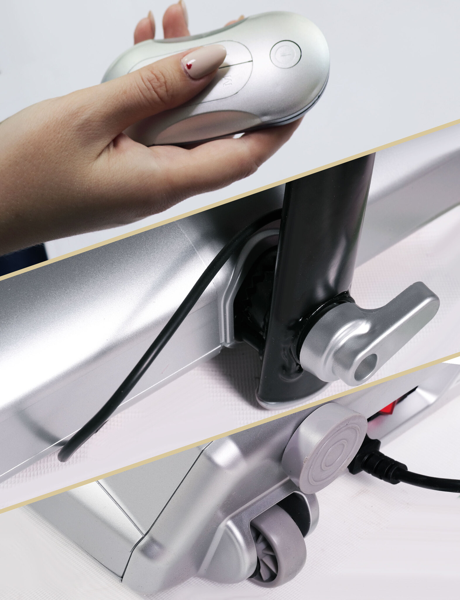 Удобное перемещение тренажера обеспечивают транспортировочные колеса. В сложенном виде тренажер занимает минимум пространства и легко поместится даже под кроватью.