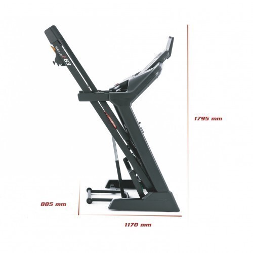 В консоль интегрирован яркий LCD дисплей, позволяющий удобно просматривать все основные параметры тренировки. Блок текстовых сообщений предоставляет информацию о текущих параметрах тренировки и упрощает процесс управления беговой дорожкой. Дисплей показывает скорость, наклон, время, расстояние, истраченные калории, пульс и темп. Консоль имеет встроенные динамики с возможностью подключения MP3-плеера.
