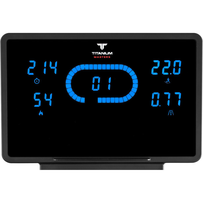 Здесь использованы наиболее качественные компоненты, а заявленные технические характеристики представляют собой максимально возможные в классе беговых дорожек для домашнего использования. По сути, по своим параметрам Physiotech A520 приближается к уровню оборудования, используемого в в фитнес-клубах, и подходит для пользователей любого уровня подготовки – от начального до профессионального. Двигатель японской Fuji Electric мощностью 4,0 л.с. практически не имеет ограничений – максимальный вес пользователя составляет 160 кг. Размер бегового полотна 151 см в длину и 55 см в ширину обеспечивает наиболее комфортный и безопасный режим ходьбы и бега на любых скоростях, включая максимальные. Само беговое полотно толщиной 2,2 мм от производителя наиболее качественных полотен швейцарской компании Habasit™ относится к классу коммерческих и при надлежащем обслуживании пройдет без замены десятки тысяч километров. Мощный двигатель напрямую связан с максимальной скоростью – дорожку можно разогнать до 22 км/ч. Электрический угол наклона регулируется в диапазоне от 0 до 20%, что также является максимально возможным значением. Амортизационная платформа, скомбинированная из связки 2-х полиуретановых амортизаторов rubber-HEADS™и 8-ми динамических эластомеров VCS™ коммерческого класса, настроена на средне-мягкий уровень жесткости и является одной из лучших на сегодняшний день систем амортизации с минимальной нагрузкой на суставы. Отдельно стоит сказать про консоль и механику управления. Дисплей состоит из основного LED экрана c профилем тренировки и 4-х дополнительных, выводящих основные параметры тренировки. Часть управления вынесена на джойстик-шайбу – это удобный и современный метод управления. Одновременно сам джойстик-шайба представляет из себя LCD экран, на который выводятся такие параметры как скорость, угол наклона и частота пульса. Вместе с джойстиком дорожка управляется консольными сенсорными клавишами. На боковых поручнях расположены сенсорные датчики пульса. В программный пакет тренировочного компьютера входит невероятные количество разных программ. Это 99 различных предустановленных тренировочных профилей, а также 3 целевых режима с обратным отсчетом (дистанция, время и калории). Есть здесь также жироанализатор Body Fat и тест Индекса массы тела BMI. Titanium Masters Physiotech A4520 легко складывается с помощью двухфазной гидравлики easy-DROP™ и перемещается посредством 2-ух транспортировочных роликов. Преимуществом дорожки является система автоматического смазывания. Достаточно раз в несколько месяцев доливать силиконовую смазку в специальную емкость – и далее система будет самостоятельно распределять необходимое количество смазки. Преимущества: • Высококачественные компоненты премиального класса • Мощный двигатель Fuji 4,0 л.с. • Многоэкранный LED-дисплей с сенсорными клавишами • Управление с помощью современной шайбы-джойстика с LCD дисплеем • Максимальная скорость 22 км/ч • Электрический угол наклона с диапазоном 0-20% • Великолепная средне-мягкая амортизация из 2 полиуретановых амортизатора rubber-HEADS™и 8 эластомеров VCS™ • Самая большая и безопасная в классе беговая зона 151*55 см • Автоматическая система смазывания • 99 встроенных программ с четкими целями и 3 программы обратного отсчета • Максимальный вес пользователя 160 кг