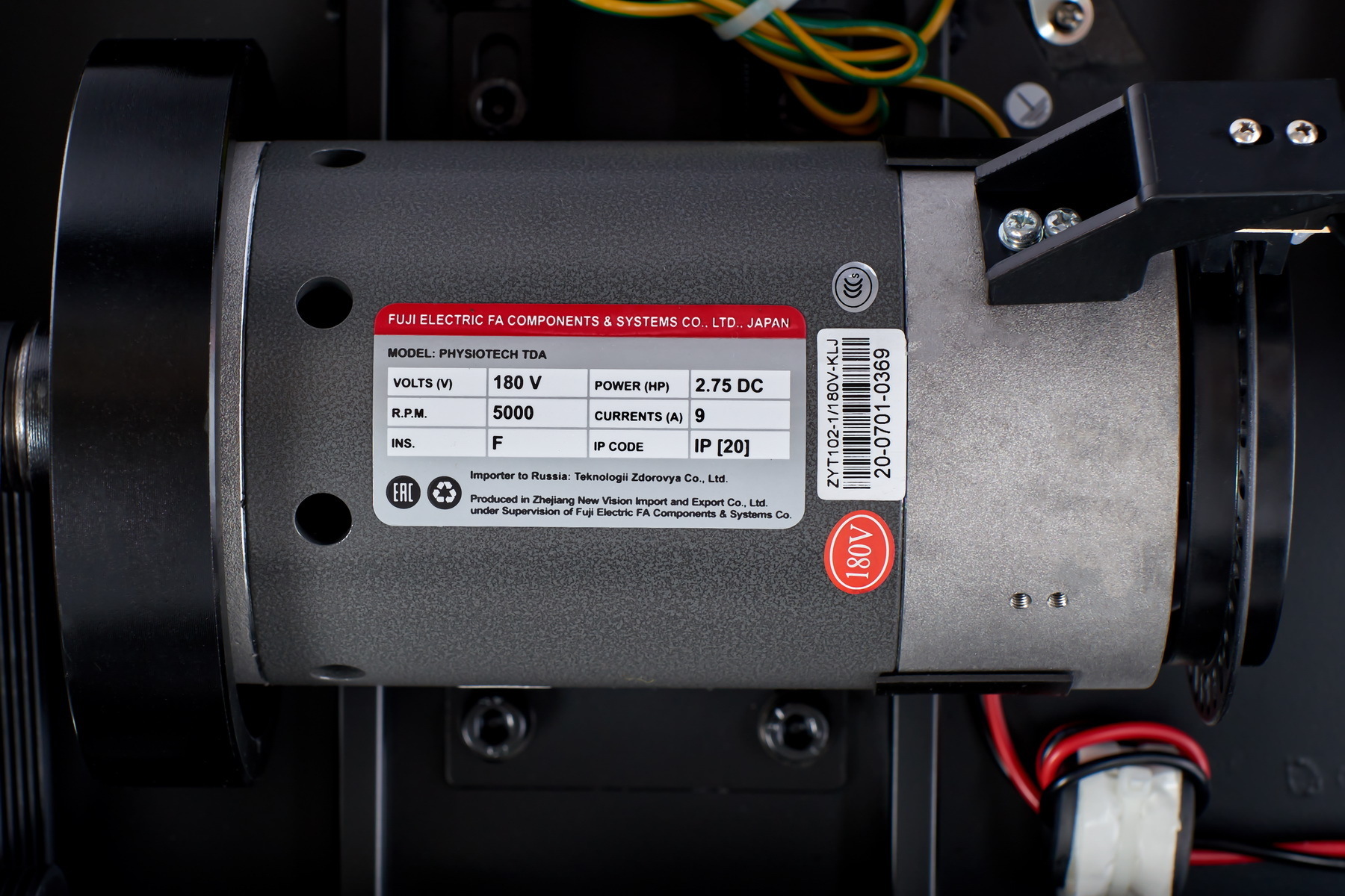 По своим динамическим характеристикам электрическая беговая дорожка Titanium Masters Physiotech TDA подойдет для любых пользователей, включая профессиональных спортсменов. Сердце тренажера – надежный, проверенный временем двигатель японской Fuji Electric мощностью 2,75 л.с. постоянного тока разгоняет дорожку до 16 км/ч. Большое беговое полотно с рабочей площадью 126,5*42,5 см. обеспечивает полную свободу движений на любых скоростях, включая максимальные. Угол наклона изменяется автоматически в диапазоне от 0 до 15%. За амортизацию отвечает передовая амортизационная платформа на основе 2-ух полиуретан-гелиевых амортизаторов air-CUSHION™ и 2-ух полноразмерных динамических эластомеров VCS™ профессионального уровня. Такая комбинация обеспечивает отличные демпфирующие свойства, настроена на универсальный средний уровень жесткости и оказывает минимальную ударную нагрузку на колени, стопы и позвоночник. Важным элементом демпфирующей системы является современная двойная рама, которая позволяет гармонично использовать все элементы амортизации. За качество скольжения отвечает многослойное полотно NНT-216 толщиной 1,6 мм. швейцарского бренда Habasit и парафинированная дека толщиной 18 мм.