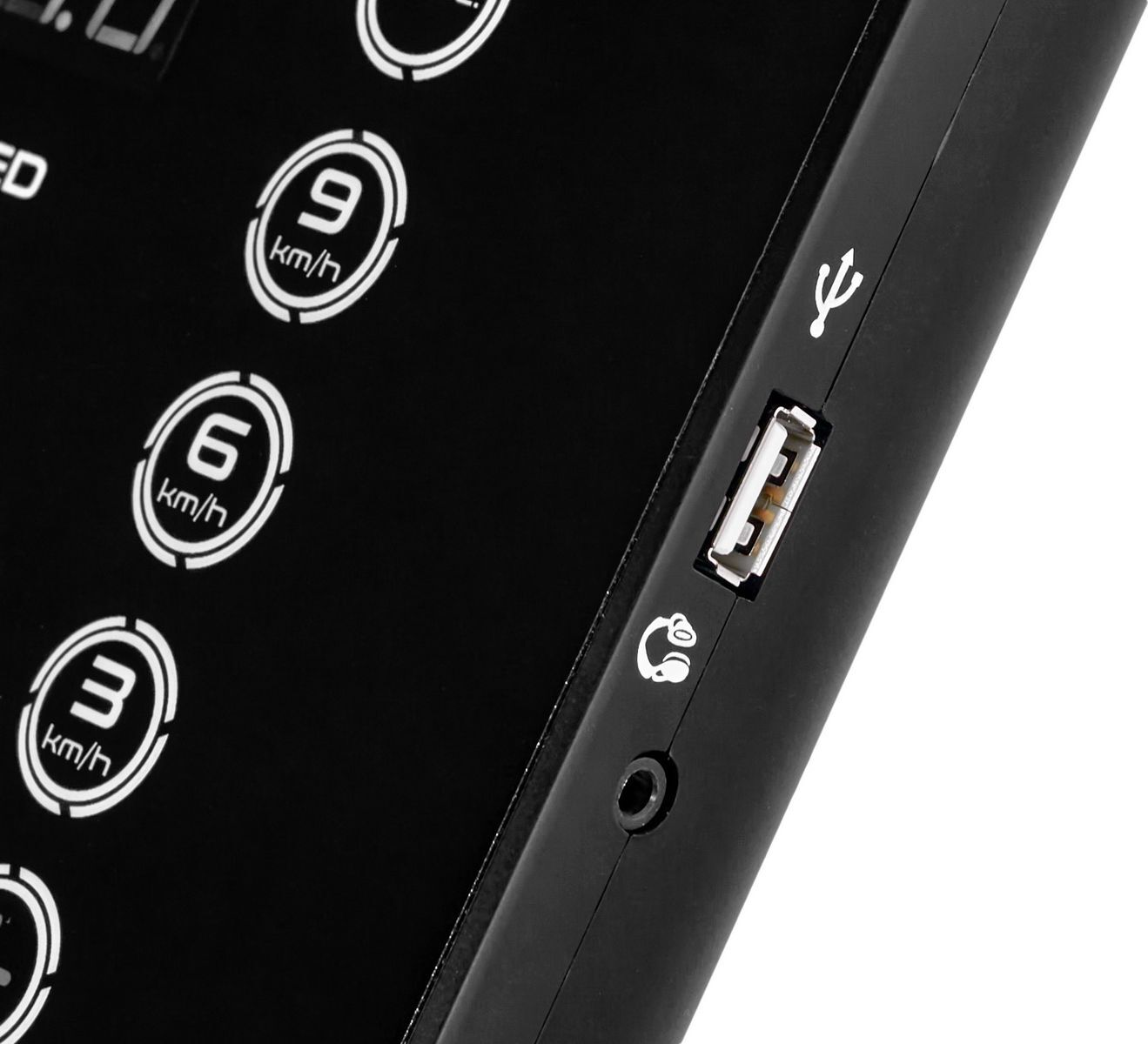 В программный пакет тренировочного компьютера входит масса различных программ. 18 предустановленных программных профилей ориентированы на различные задачи – тренировку выносливости, скорости, кардио, снижение веса и сжигание жира. Если по каким-то причинам ни один из 18 предустановленных профилей не подойдет – можно самостоятельно написать и сохранить в одном из трех слотов собственную программу. 3 пульсозависимые программы отвечают за тренировку тех пользователей, которым важно контролировать показатели частоты сердечного ритма. Для точного определения пульса и просто комфортной тренировки в консоль встроен высокоточный беспроводной телеметрический приемник – оригинальный Polar™ (передатчик сигнала в виде нагрудного ремня приобретается отдельно). Разнообразить тренировку поможет мультимедийная составляющая – в дорожку установлены колонки мощностью 3 ватта, а звук воспроизводится с пользовательского смартфона через Bluetooth. Управлять воспроизведением аудио можно непосредственно клавишами консоли. Сам смартфон можно положить на предназначенную для этого подставку, а также зарядить через консольный USB порт.