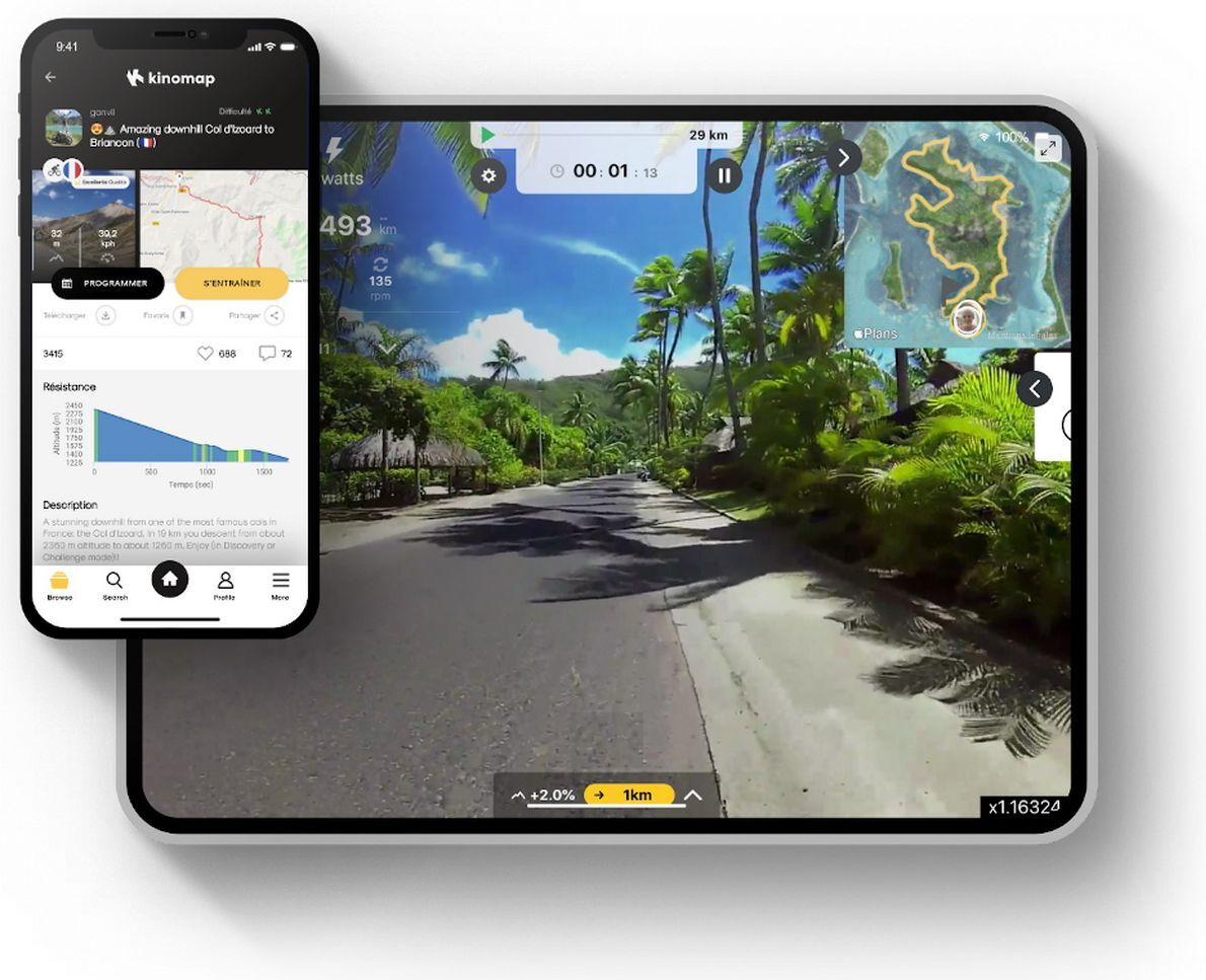 К числу передовых технологических возможностей, существенно расширяющих возможности тренировки, относится интеграция Titanium Masters Physiotech X-Compact со сторонними приложениями. Приложение Fitshow представляет из себя набор дополнительных тренировочных программ, а также сохраняет и анализирует тренировочные данные. При желании можно управлять тренажером прямо со своего смартфона. Высокотехнологичное приложение Zwift является по сути симулятором виртуальной реальности и ориентировано на велосипедный спорт, бег и тренировки на тренажерах. Это действительно классное приложение с невероятным уровнем визуализации и погружения. Kinomap – крупнейшая мировая платформа для видео, позволяющая создавать виртуальную симуляцию тренировки на реальном маршруте. Пользователь может выбирать из тысяч уже созданных другими спортсменами маршрутов. Приложение в режиме реального времени меняет наклон и уровень сопротивления на вашем тренажёре. Получается не менее интересно, чем на реальном маршруте на открытом воздухе: можно путешествовать по разным странам, не выходя из комнаты, и параллельно приводить себя в форму.