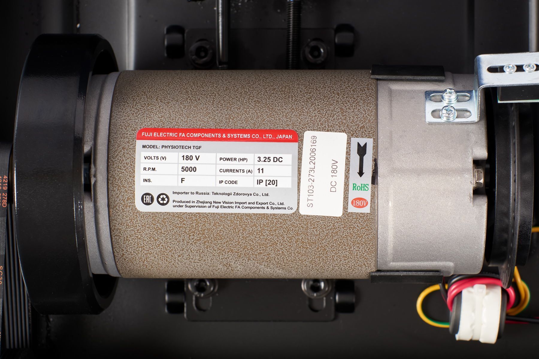 В моторный отсек установлен мощный и надежный двигатель от Fuji Electric - Fuji Servo™ C-Series 3,25 л.с. постоянного тока. По своим техническим характеристикам моторы Fuji Electric одни из лучших, если не лучшие двигатели в фитнес индустрии. Двигатель Slimtech S370 APP предельно тяговитый и с легкостью справляется с весом пользователя до 140 кг.