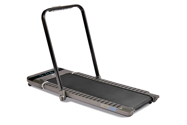 За движение отвечает надежный двигатель американской Leeson Electric мощностью 1.75 л.с. постоянного тока. Скорость регулируется в диапазоне от 1 до 10 км/ч - на максимуме этого вполне хватает для комфортного бега трусцой. Размеры бегового полотна составляют 120 см. в длину и 40 см. в ширину – такие параметры считаются базовым стандартом для полноценной ходьбы и бега. За амортизацию отвечают 8 эластомеров среднего размера – это достаточно хороший уровень для такого класса беговых дорожек, хотя для создания дополнительной мягкости лучше заниматься на ковре или специально предназначенном для этого полиуретановом коврике для фитнес оборудования. Собрать беговую дорожку достаточно просто – процесс сборки и разборки составляет около минуты. Titanium One T50 SH удобна в хранении и занимает минимум места – ее толщина в сложенном виде составляет всего 16 см.