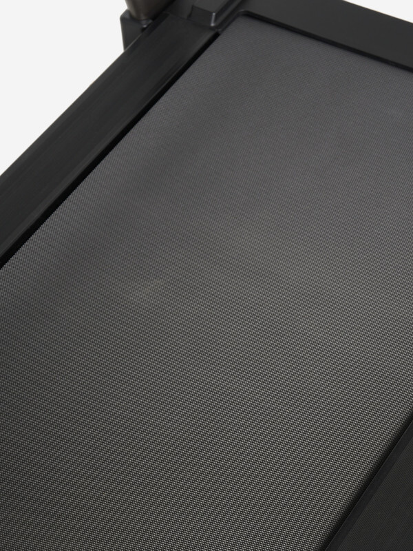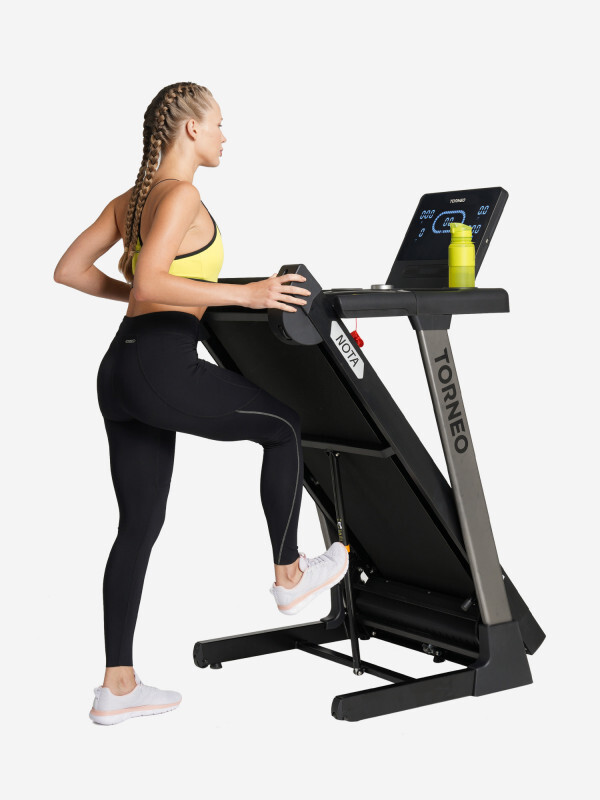 Двигатель размещен под полотном, поэтому дорожка гораздо компактнее моделей, у которых двигатель находится спереди и добавляет несколько десятков сантиметров к общим габаритам. Кроме того, во время тренировки отсутствует риск задеть кожух двигателя ногой.