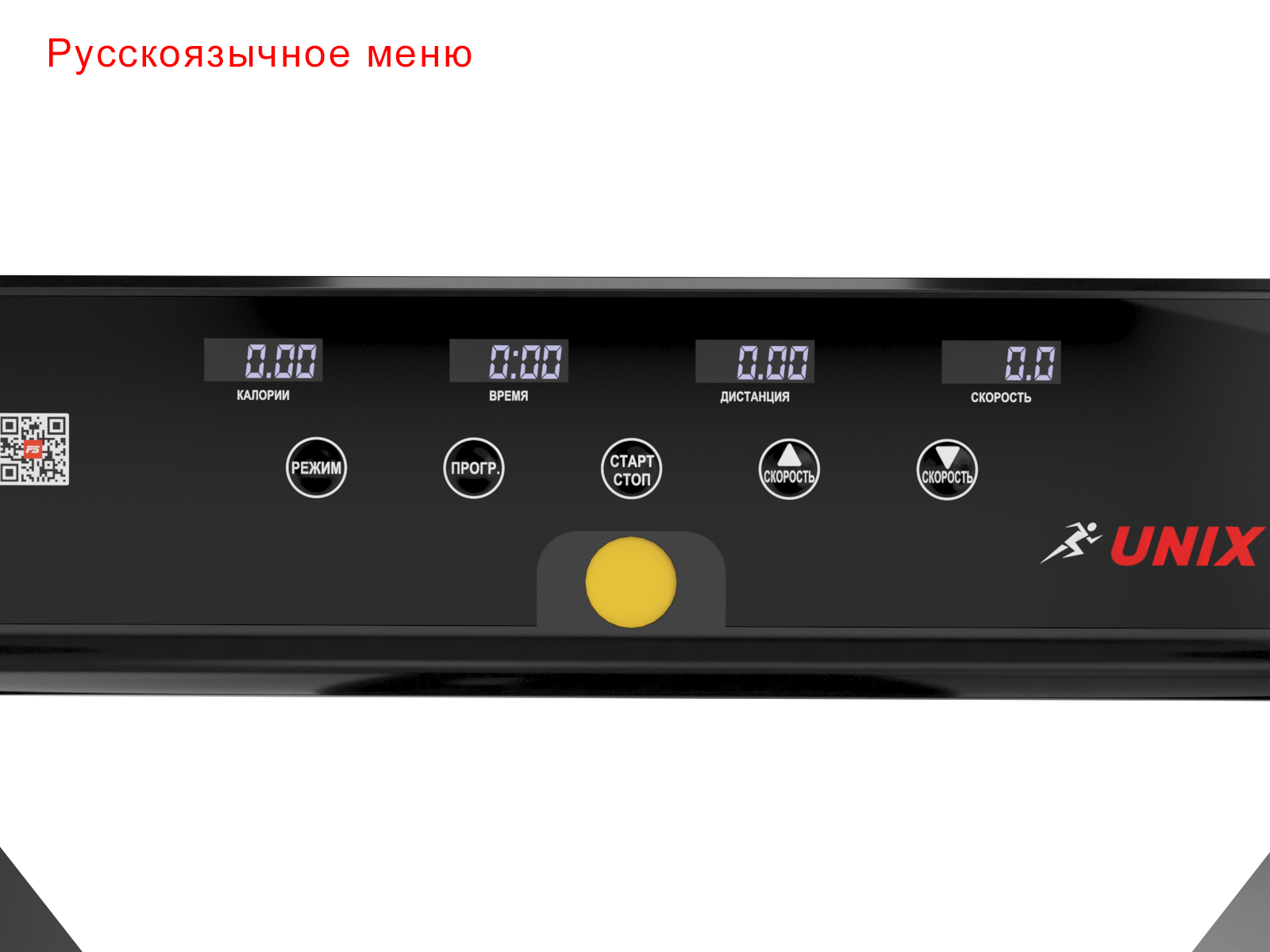 Устройство обладает интуитивно понятной панелью управления, которая отображает на себе такие параметры как скорость, дистанция бега, потраченные калории, время тренировки, пульс.