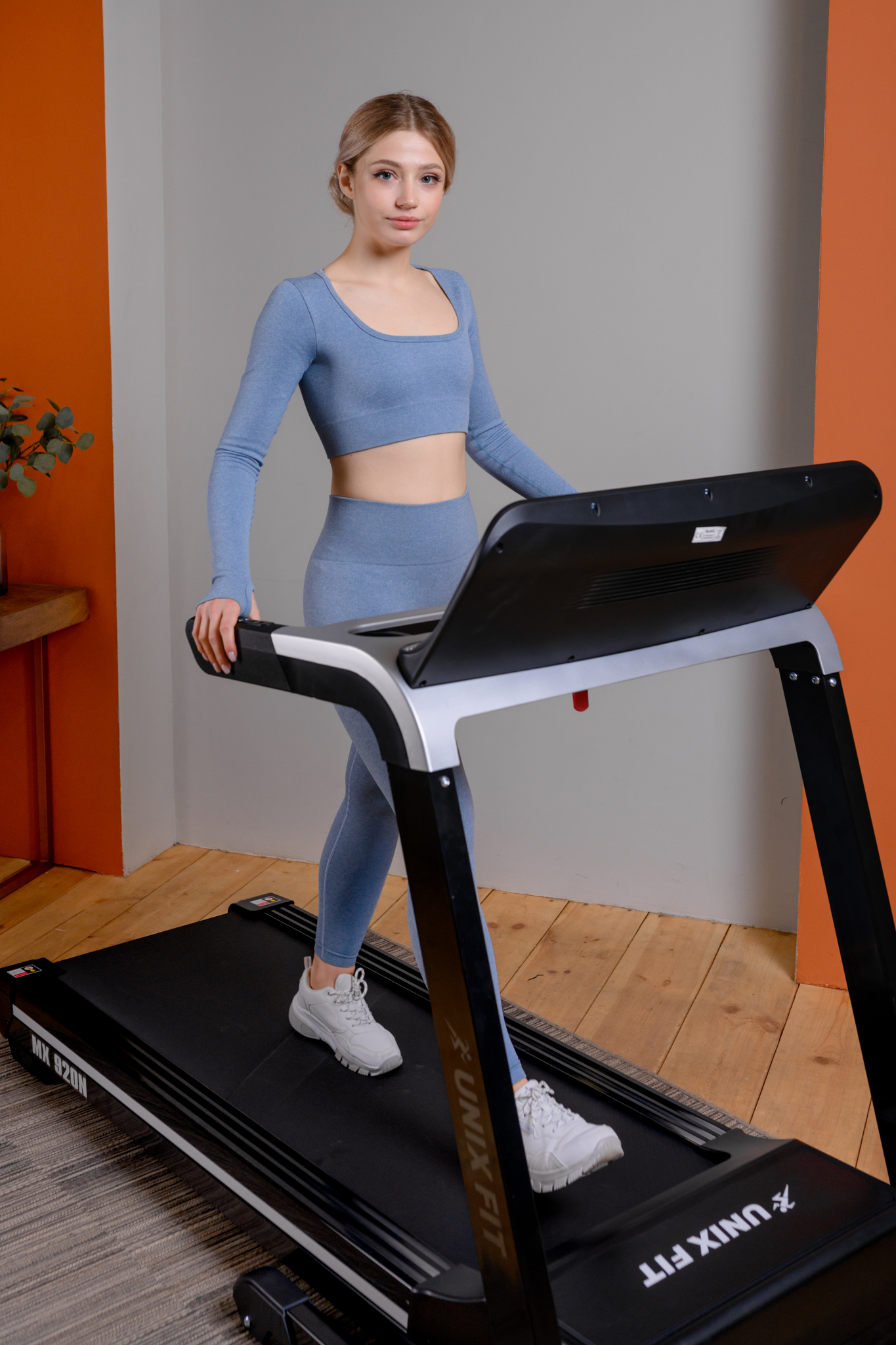- скорость бегового полотна регулируется от 1 до впечатляющих 20 км/ч, а дополнительный электромотор позволяет регулировать угол до 20%;