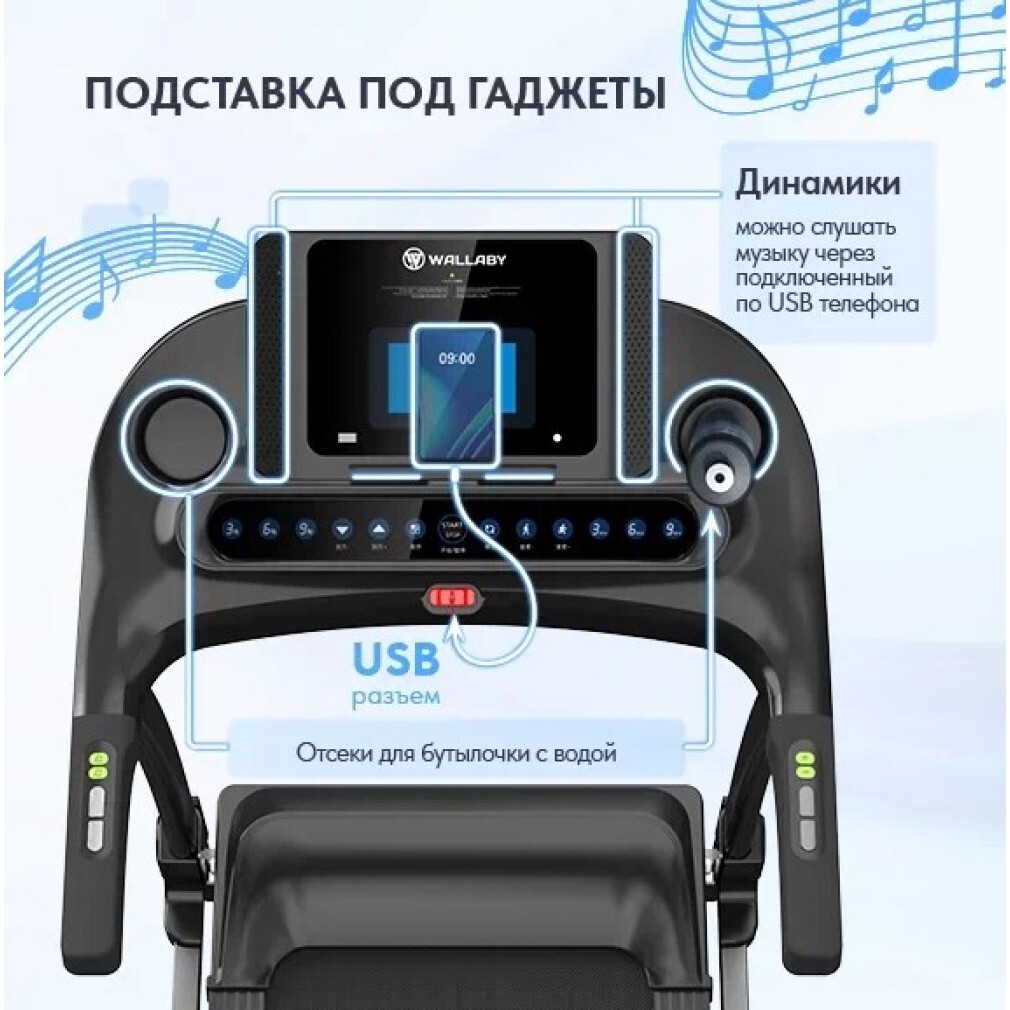 - Беговое полотно: двухслойное антискользящее покрытие (толщина 1.4 мм)