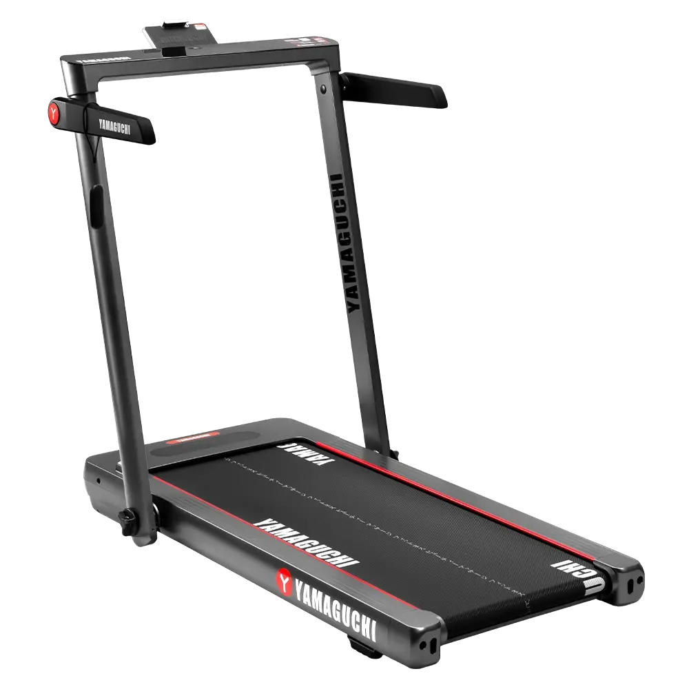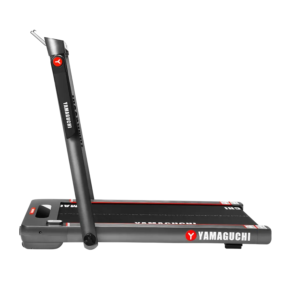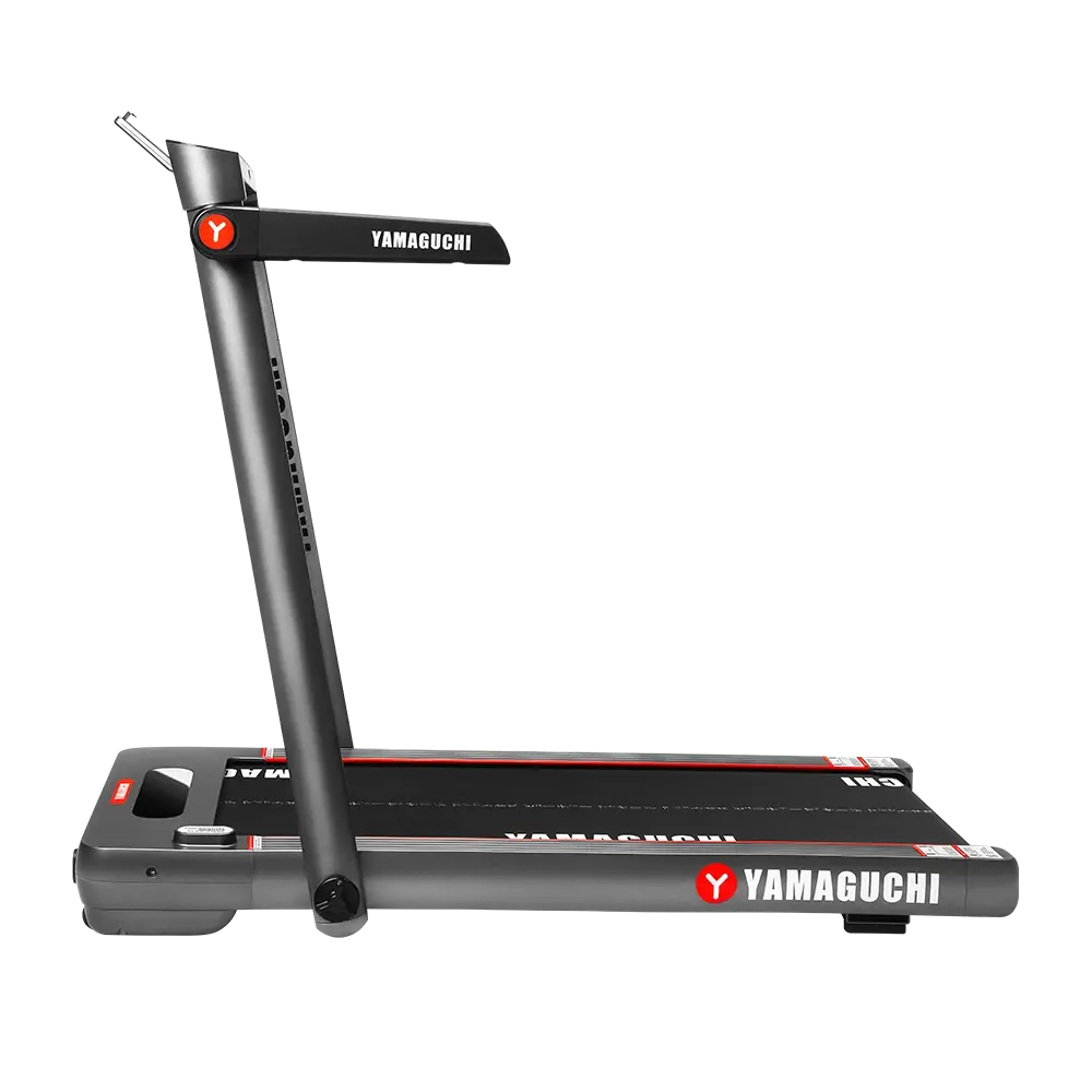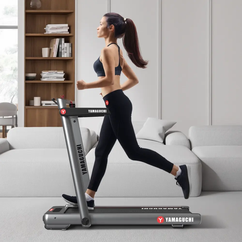 Беговая дорожка легко спрячется под диван или встанет вплотную к стене — достаточно только сложить поручень
