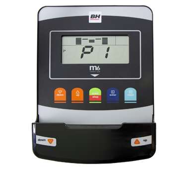 LCD-ДИСПЛЕЙ M6. Тренировочный компьютер представлен многофункциональным черно-белым LCD-дисплеем M6. На экран выводятся следующие показатели: время, дистанция, скорость, Ватты, обороты в минуту, калории, пульс. В памяти консоли содержится 10 предустановленных программ. Есть здесь и 4 пульсозависимые, 1 программа случайного выбора, 1 Ватт-программы, а также пользовательский режим. Помимо установленных программ, можно воспользоваться регулируемым ручным режимом.