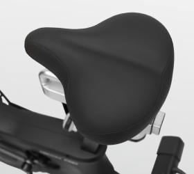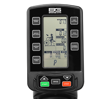 A900M PRO – это аэробайк класса full commercial от немецкого бренда BRONZE GYM. Модель впишется в любой фитнес клуб с высоким уровнем проходимости, а также отлично дополнит кросс-студию или зал для единоборств. Аэробайк изначально создан для тренировок с высокой интенсивностью, поэтому очень важно, чтобы тренажер был надежным и выдержал все нагрузки. В основе конструкции A900M PRO - высокопрочная рама. Изделие массивное и довольно тяжелое, что говорит о фундаментальности бренда. Вес спортивного снаряда составляет 50 кг и способен выдерживать вес пользователя до 160 кг. Устойчивость оборудования гарантируют 2 регулируемые опоры. Аэробайк A900M PRO очень мобилен, несмотря на свои габариты. Для удобства перемещения предусмотрено 2 больших силиконовых колеса, а также специальная ручка. Оборудование относится к классу «вентиляторных» и оснащено аэромагнитной системой нагружения с ременным приводом. Дополнительную нагрузку обеспечивают 15 уровней регулировки. В основе модели большая турбина с пропеллером размером 27 дюймов. Воздушное сопротивление делает тренировку максимально эффективной для любого уровня спортивной подготовки пользователя. Чем выше скорость, тем выше нагрузка – это основной принцип работы A900M PRO. Таким образом, увеличение сопротивления зависит исключительно от интенсивности тренировки пользователя. Конструкция модели позволяет выполнять упражнения не только классическим для велотренажера способом – руками или ногами. На A900M PRO есть возможность акцентировать тренировку на руки, или отдельно на ноги. За комфорт во время интенсивных тренировок отвечает сиденье профессионального класса. Отрегулировать его можно под любого пользователя, как по вертикали, так и по горизонтали. На тренажере установлены педали с антискользящим покрытием в виде рельефного узора и ремешками для надежной фиксации ног. Тренировочный компьютер представлен дисплеем профессионального уровня. На экране отображаются следующие данные: время, скорость, дистанция, расход калорий, пульс, темп, ватт, интервал. Всего программный пакет насчитывает 8 программ, среди которых 3 целевых программы (время, дистанция и пульс), есть 2 встроенные интервальные тренировки и 1 пользовательский режим. Можно воспользоваться программой быстрого старта с регулировкой всех показателей. Для точного определения пульса и просто комфортной тренировки в компьютер встроен беспроводной приемник (нагрудный ремень-передатчик приобретается отдельно). |