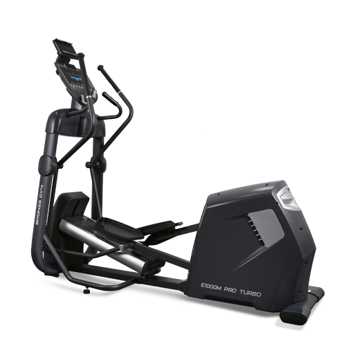 Большое внимание на E1000M уделено внешнему виду, из которого вытекают все биомеханические преимущества модели. Тренажер относится к классу эллиптических с маховиком, расположенным в задней части оборудования. Инерционный вес маховика E1000M эквивалентен 25 кг. Такой показатель обеспечивает непрерывные плавные движения на любых уровнях сопротивления (всего их 20). Стоит отметить, что команда инженеров-конструкторов Bronze Gym добились рекордной отметки в расстоянии между педалями. На E1000M PRO TURBO так называемый супермалый Q-Фактор составляет всего 2,7 см. Это один из самых лучших показателей в индустрии фитнеса, который повторяет максимально естественные движения пользователя во время тренировок. Что касается длины шага, то здесь она составляет оптимальные 50,8 см. Для более интенсивных тренировок и их разнообразия на тренажере установлен электрически изменяемый угол наклона (15 уровней).