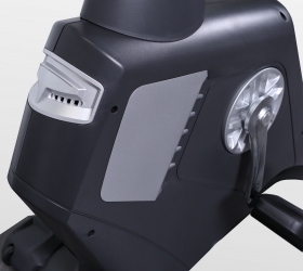 R1000M PRO TFT TURBO – это профессиональный горизонтальный велоэргометр, разработанный специально для фитнес-клубов с большим потоком клиентов. Он обеспечивает универсальную нагрузку и отличается низкой платформой для посадки, что обеспечит безопасность и комфорт пользователя. В основе надежной конструкции - высокопрочная рама с двухслойной покраской. Все изделия массивные и тяжелые, что говорит о фундаментальности бренда. Модель оснащена электромагнитной системой нагружения (индукционный тормоз EMS). Сбалансированный маховик с инерционным весом 18 кг, обеспечивает эффективную биомеханику, высокую надежность и делает ход тренажера более плавным. Мягкое педалирование и равномерное распределение нагрузки на всем цикле движения осуществляется за счет супернадежного литого шатуна в педальном узле с использованием качественных подшипников. Тренажер имеет 32 уровня нагрузки, что позволит комфортно заниматься любому пользователю. R1000M PRO TFT TURBO идеально подойдет для тех, у кого есть проблемы со спиной. Сиденье со спинкой профессионального класса имеет возможность горизонтальной регулировки. Широкое и очень мягкое, выполненное в анатомической форме с гелевыми вставками. Направляющая рельса сиденья сделана из алюминиевого сплава. Рифленые педали с прорезиненными многопозиционными ремешками создают надежное сцепление на любых скоростях. Велоэргометр удобно перемещать благодаря двум транспортировочным роликам и ручке, расположенной сзади, а точное горизонтальное положение обеспечивают компенсаторы неровностей пола. Максимальный вес пользователя - 180 кг. Тренировочный компьютер представлен многофункциональным 10,1-дюймовым сенсорным цветным TFT-дисплеем профессионального уровня. На экран компьютера выводятся все основные данные – время, скорость, дистанция, уровень нагрузки, программный профиль, калории, пульс, темп (обороты в мин.), Ватт, фитнес тест, отображение итогов тренировки. В программный пакет входят 32 предустановленные программы, в которых используются различные виды тренировок. Помимо предустановленных программ, можно воспользоваться самостоятельно регулируемым ручным режимом, а также создать собственную программу в одном из 4-х пользовательских режимов, имеются и 3 целевых программы (по времени, дистанции, калориям). 3 пульсозависимые программы отвечают за тренировку тех пользователей, которым важно контролировать верхние пределы частоты сердечного ритма. Есть отображение статистики тренировки достигнутых параметров по ее окончании (итогов тренировки) и хранение данных 4 пользователей! Плюс ко всему есть Ватт-программа. К числу дополнительных преимуществ модели относится возможность воспроизведения и вывода на динамики аудио файлов (через MP3-плеер, смартфон или планшет). Мобильное устройство при необходимости можно зарядить (через USB-порт). Также приятной опцией является держатель для бутылочки с водой. |