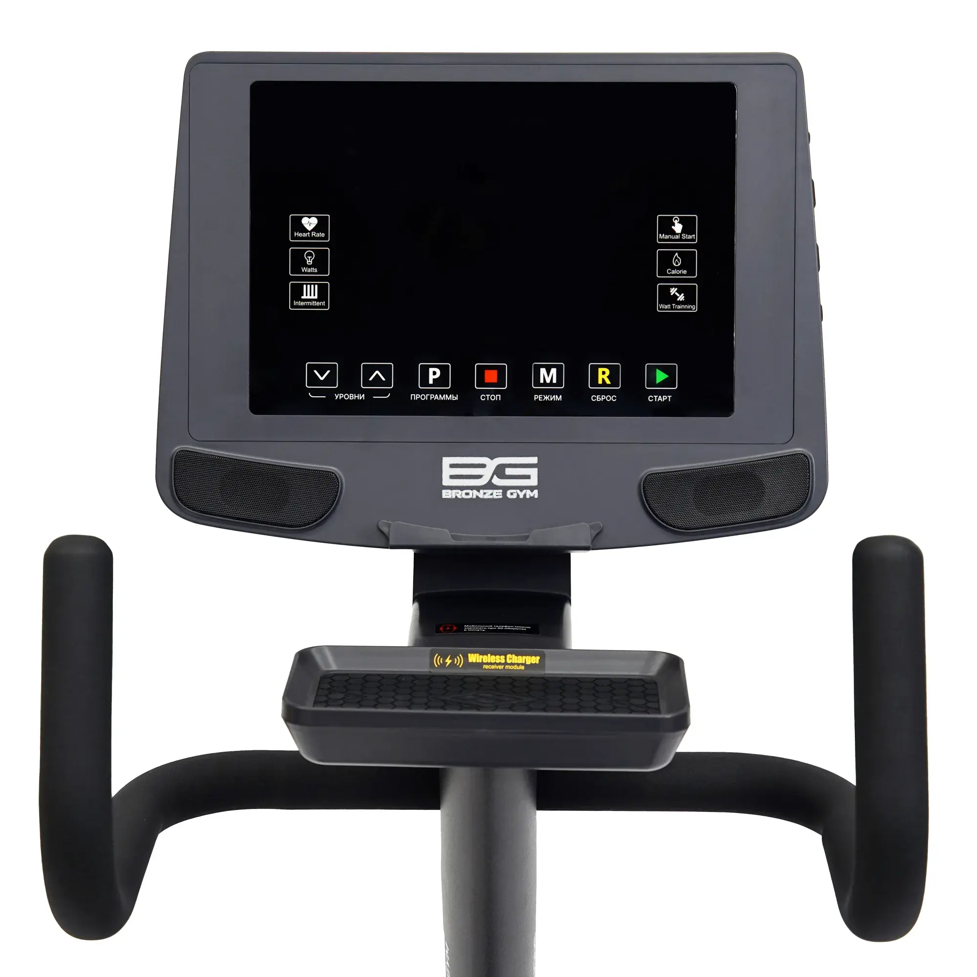 | Дополнительные функции | клавиши управления на задних поручнях: старт/стоп, регулировка нагрузки, беспроводная зарядка. |