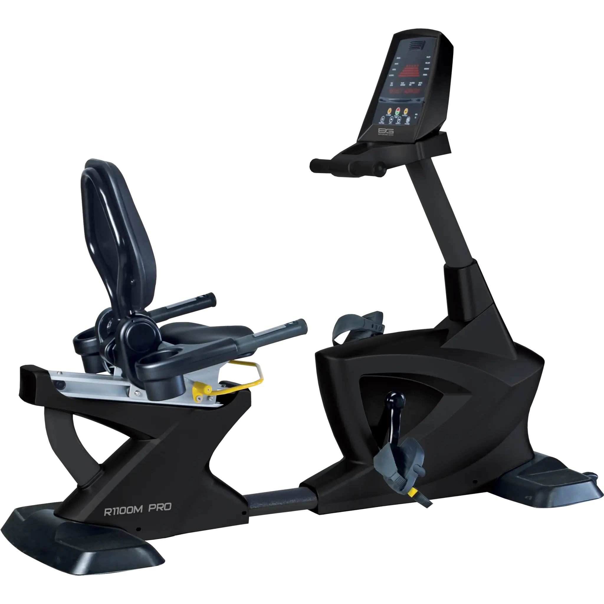 R1100M PRO – это велоэргометр с горизонтальной посадкой коммерческого класса, предназначенный для использования в крупных премиальных и бюджетных фитнес клубах. Тренажер, как и подобает профессиональному уровню, оборудован лучшими техническими характеристиками. На R1100M достигнуты оптимальные биомеханические свойства.